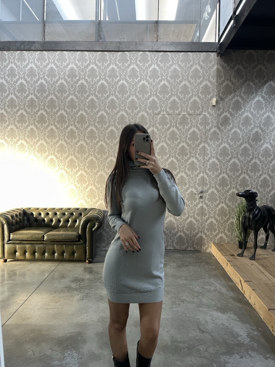 Abitino in maglia dolcevita con strass dettaglio.