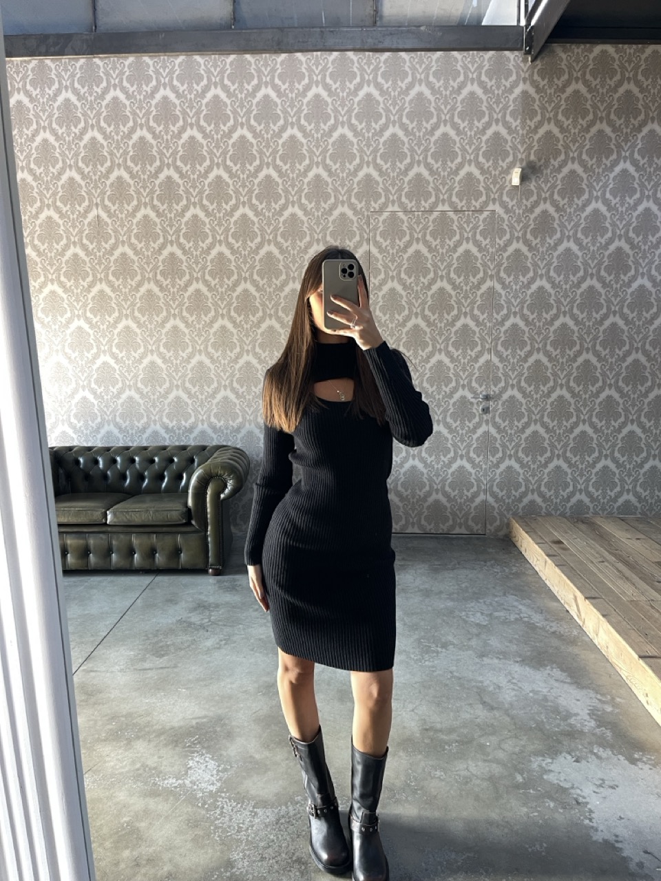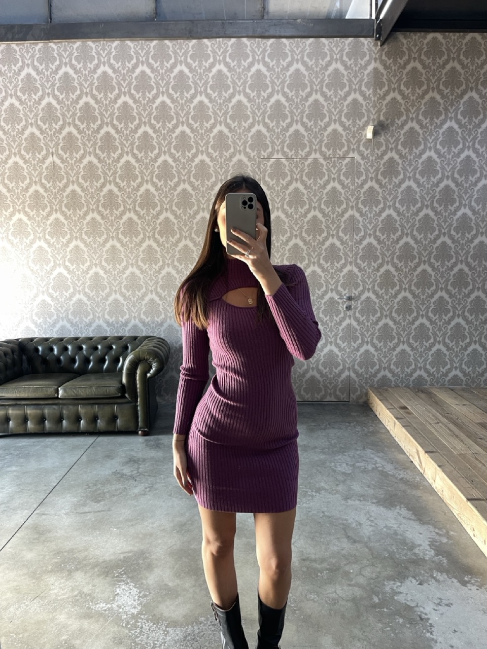 Abitino in maglia YES-ZEE  modello a costine con apertura davanti.