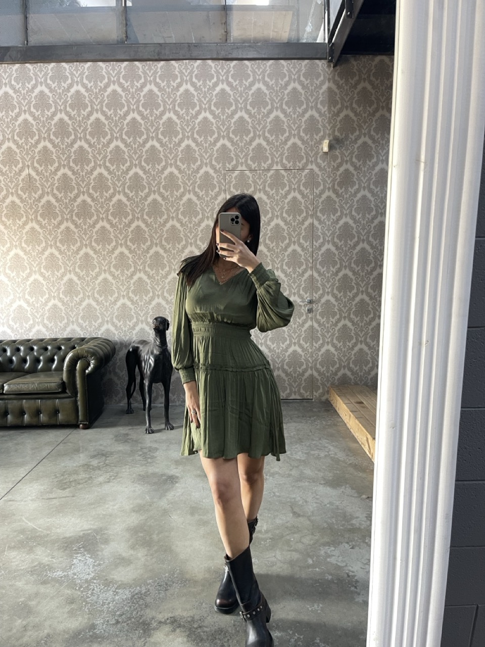 Abitino morbido con scollo a V, elastico in vita e borchie dettaglio.