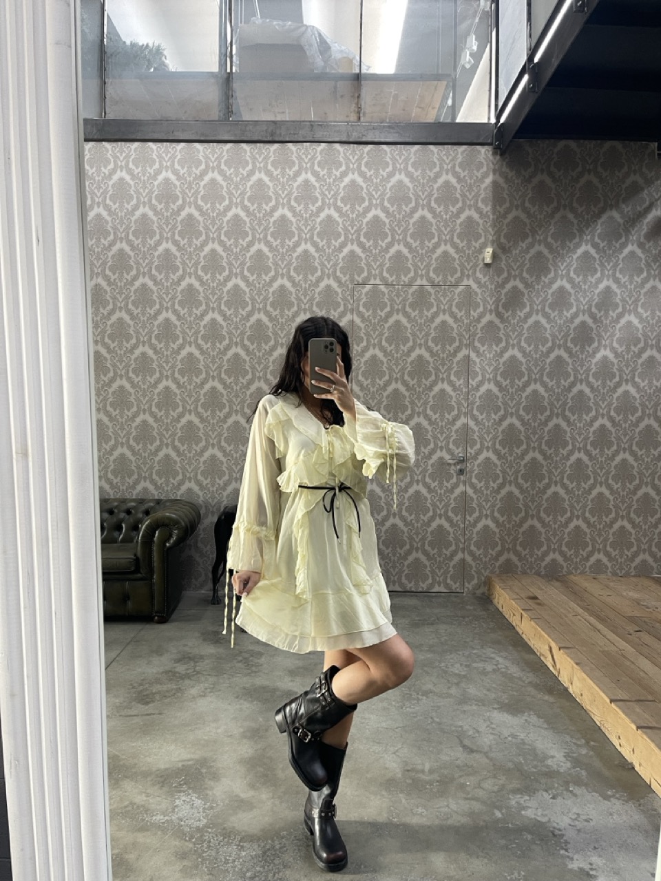 Abito MOTEL con sottoveste, scollo a V e dettaglio di volant.