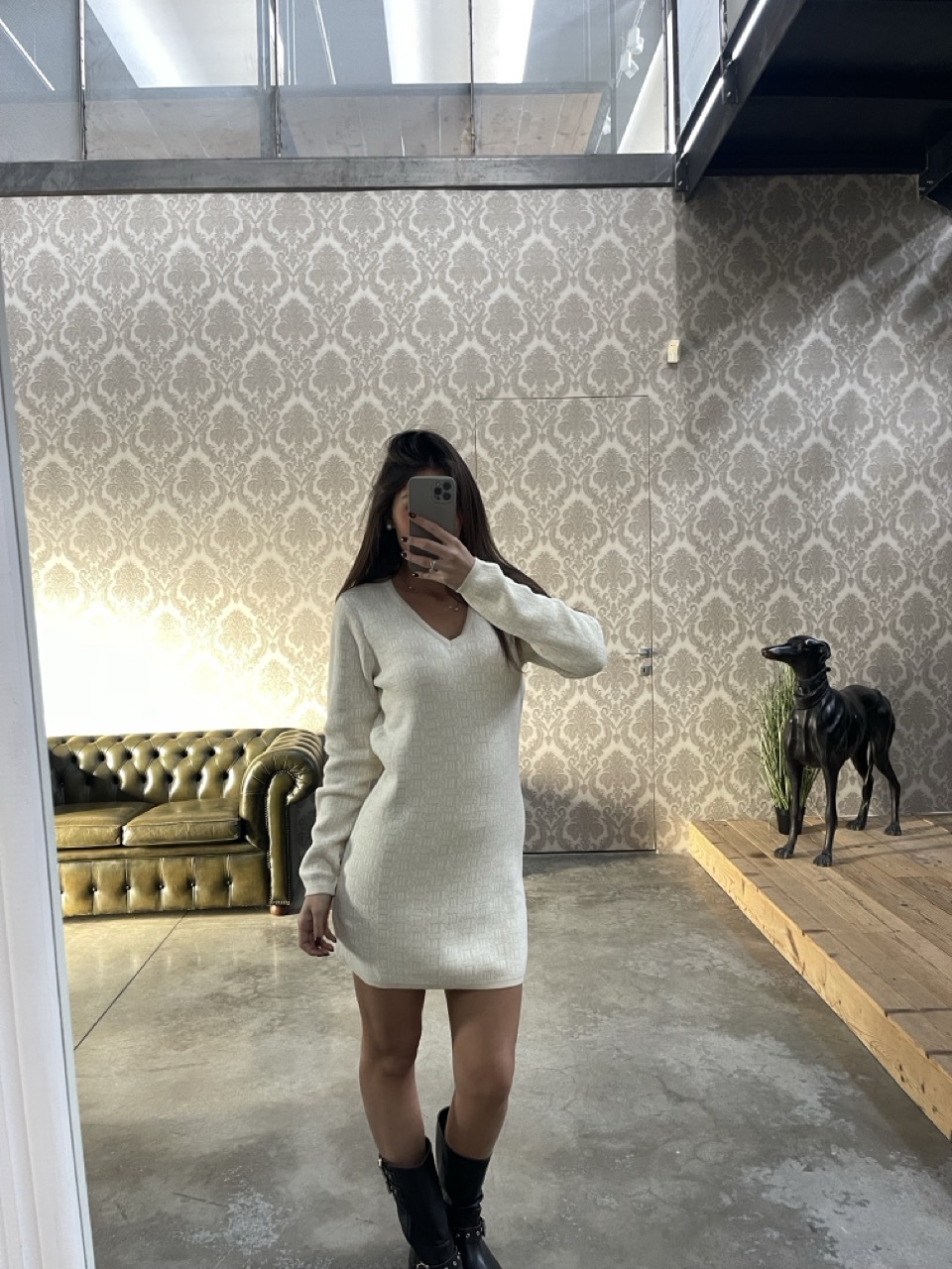 Abito in maglia LAKORE in fantasia aderente/elasticizzato con scollo a V.