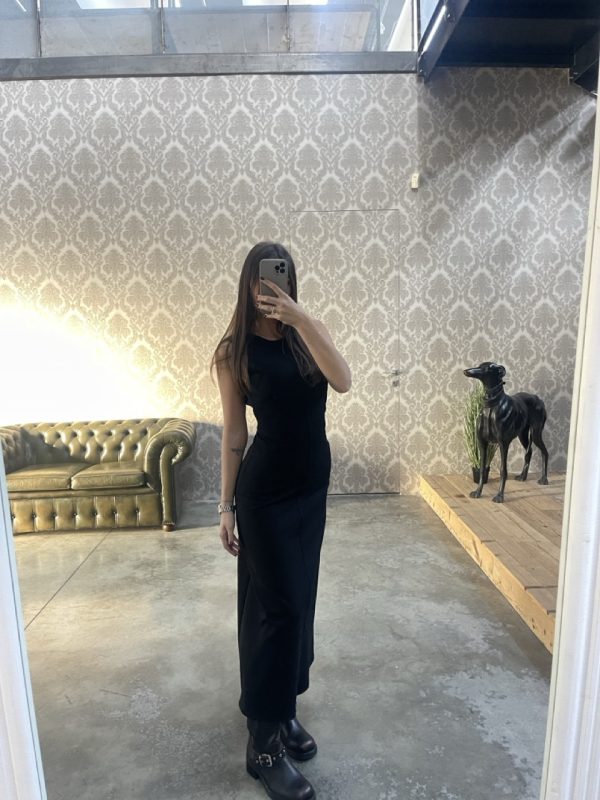Abito lungo aderente/elasticizzato con zip dietro come chiusura.