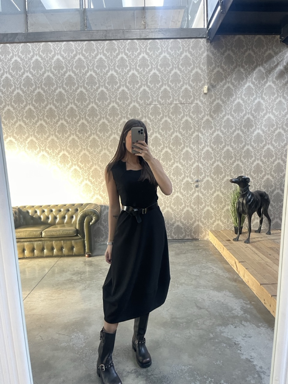 Abito midi modello a palloncino con zip laterale e cintura in vita.