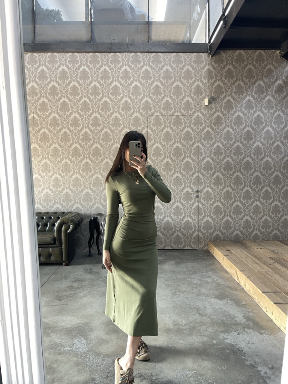 Abito midi aderente/elasticizzato con arricciatura laterale.