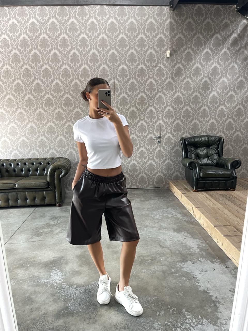 Bermuda in ecopelle KING KONG  con elastico in vita e tasche laterali.