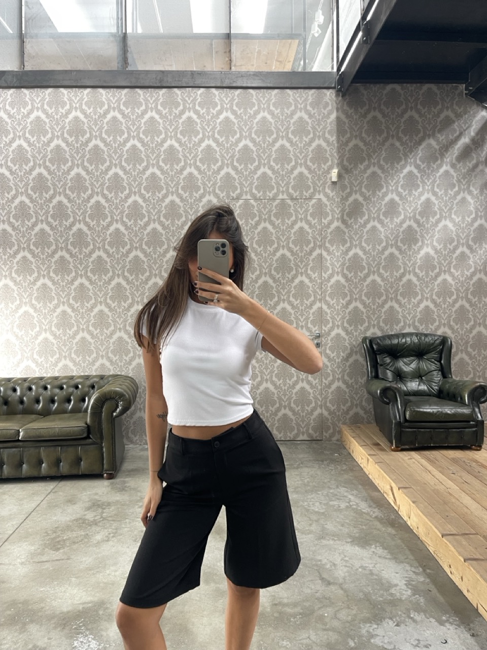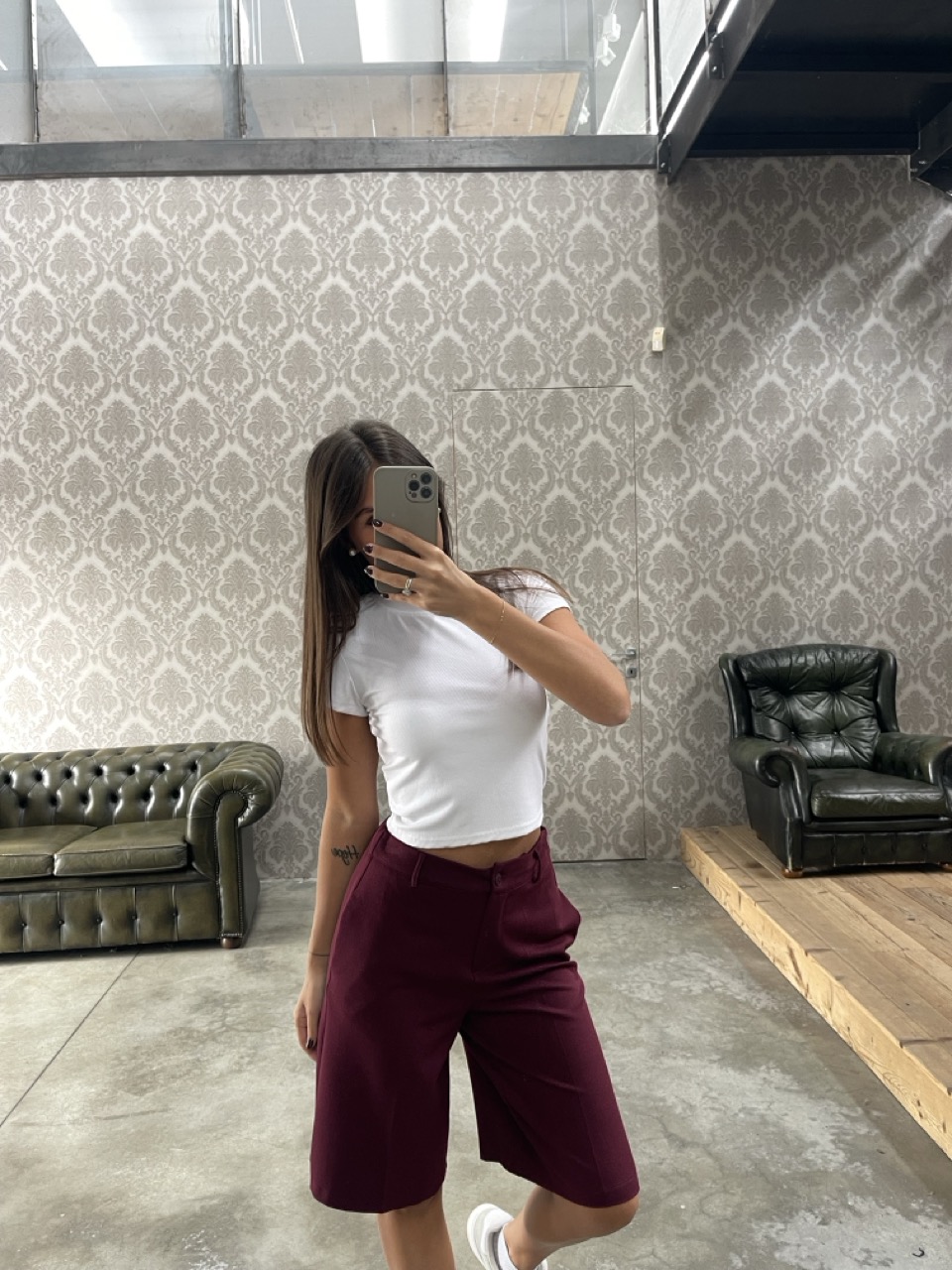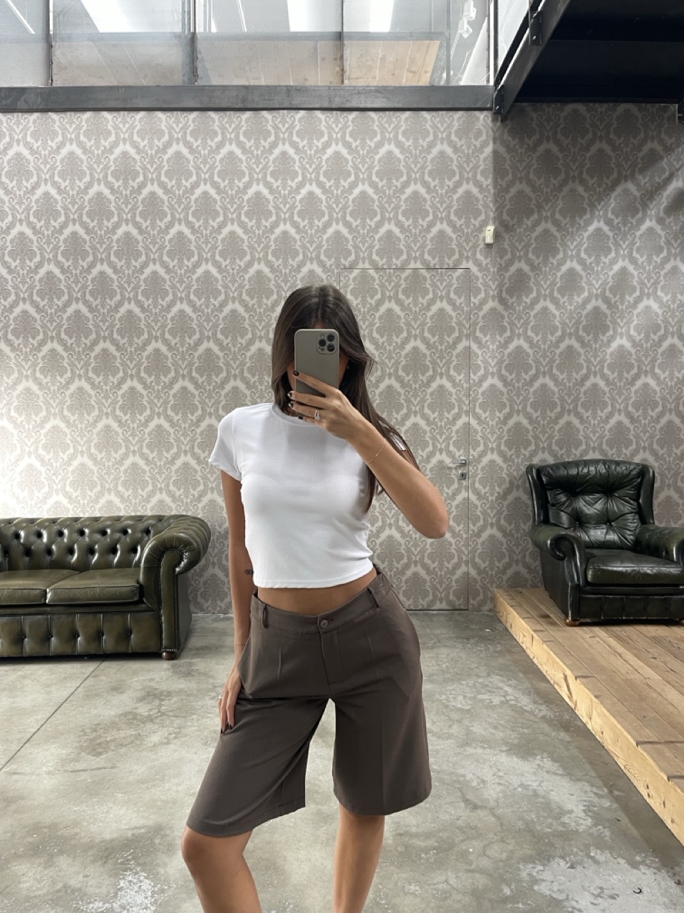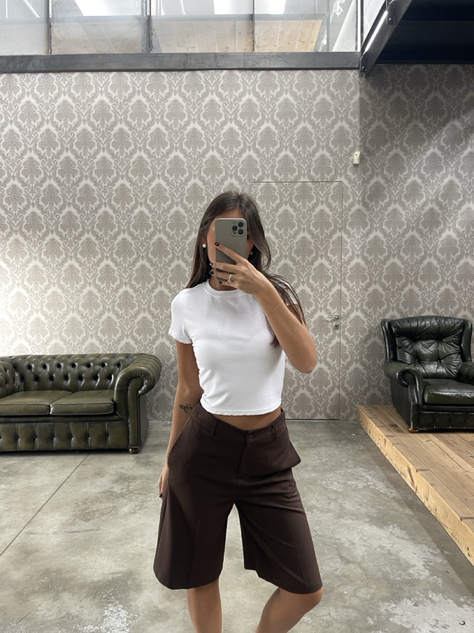 Bermuda NANEBI a vita medio alta con tasche laterali ed elastico in vita dietro.