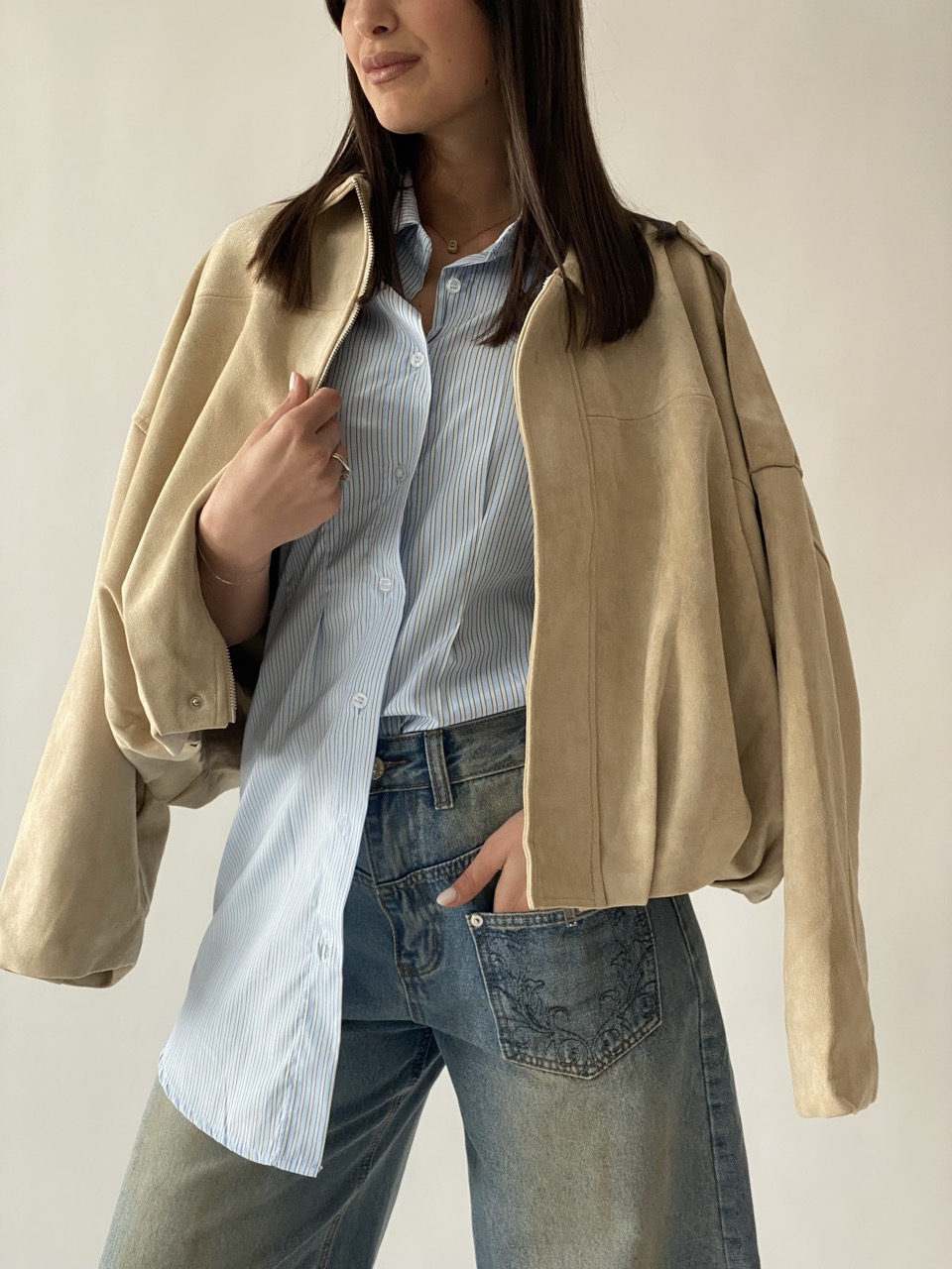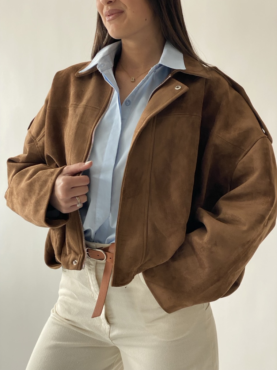 Bomberino in velluto foderato e chiusura con zip centrale.