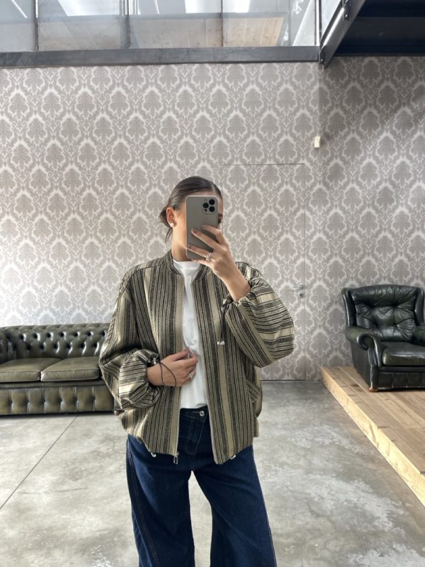 Bomberino lurex VICOLO con tasche laterli e zip centrale come chiusura.