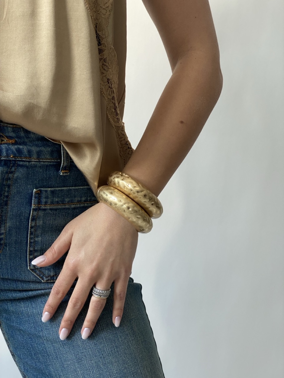 Bracciale rigido con chiusura a clip.