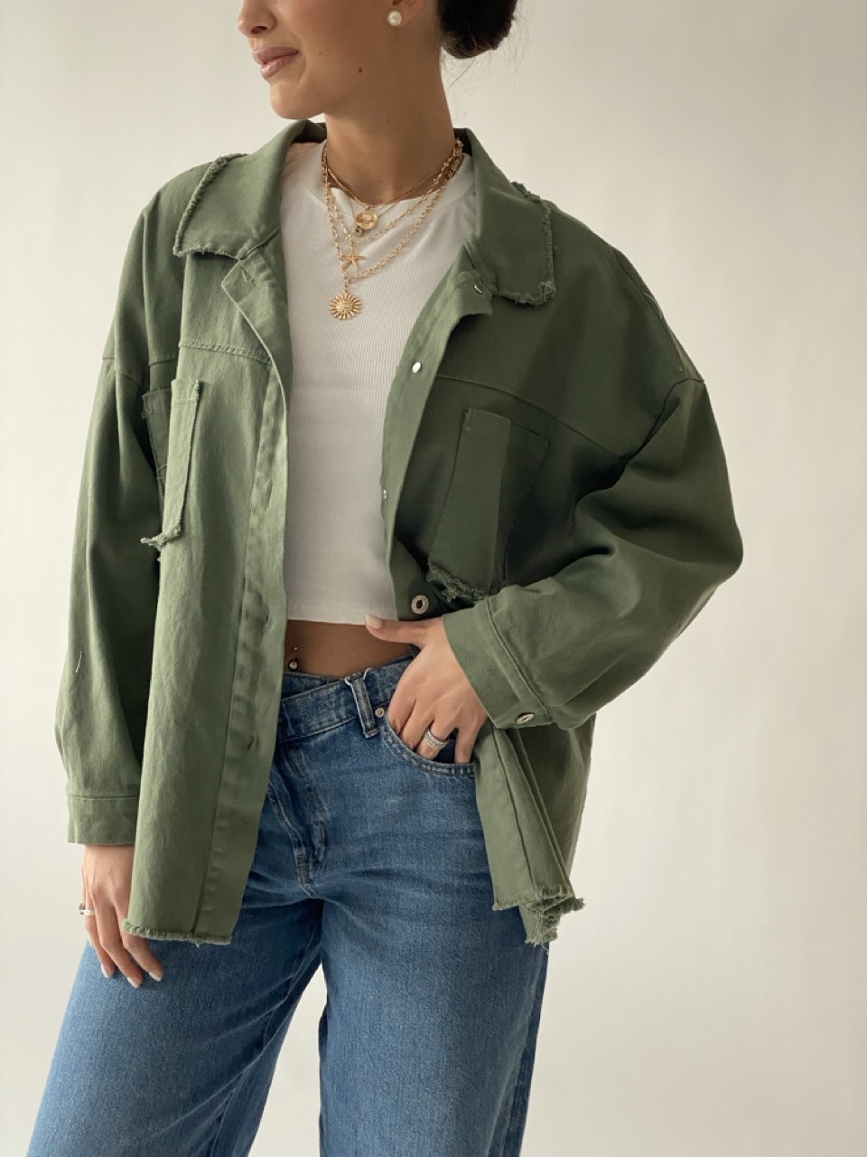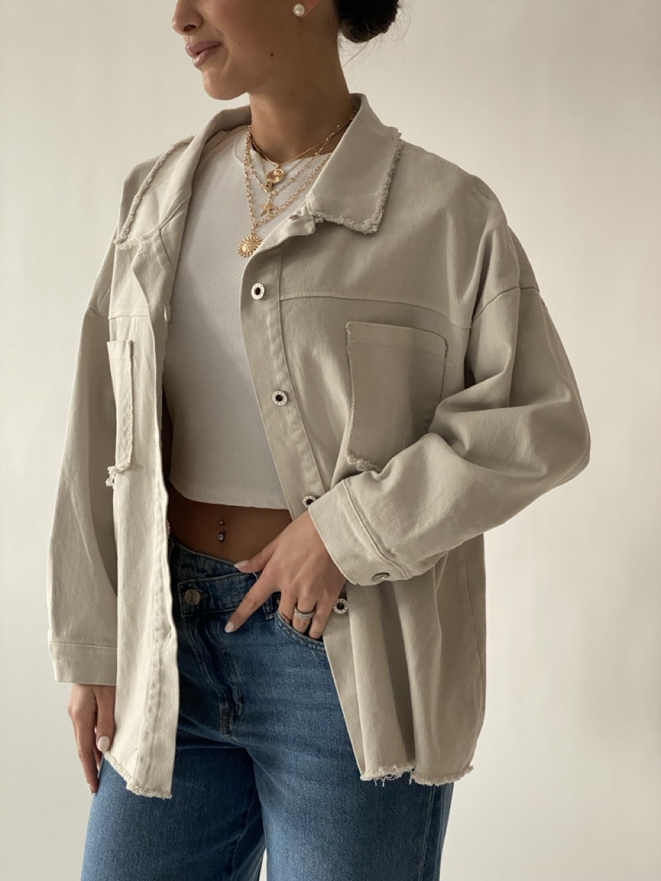 Camicia morbida con disegno dettaglio dietro e chiusura con bottoni centrali.
