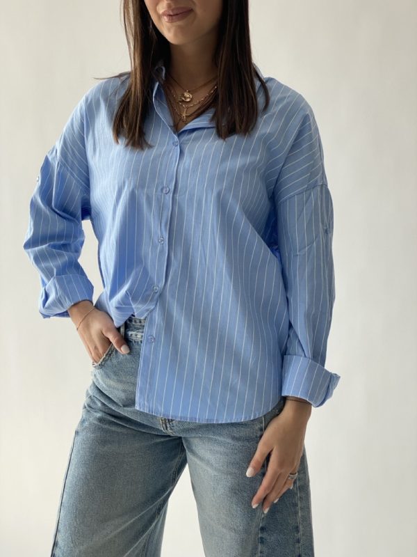 Camicia a righe modello oversize con bottoncini centrali.