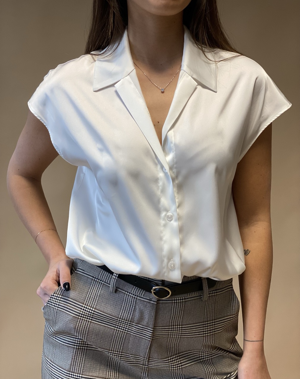Camicia IMPERIAL effetto raso con coletto e bottoncini come chiusura.