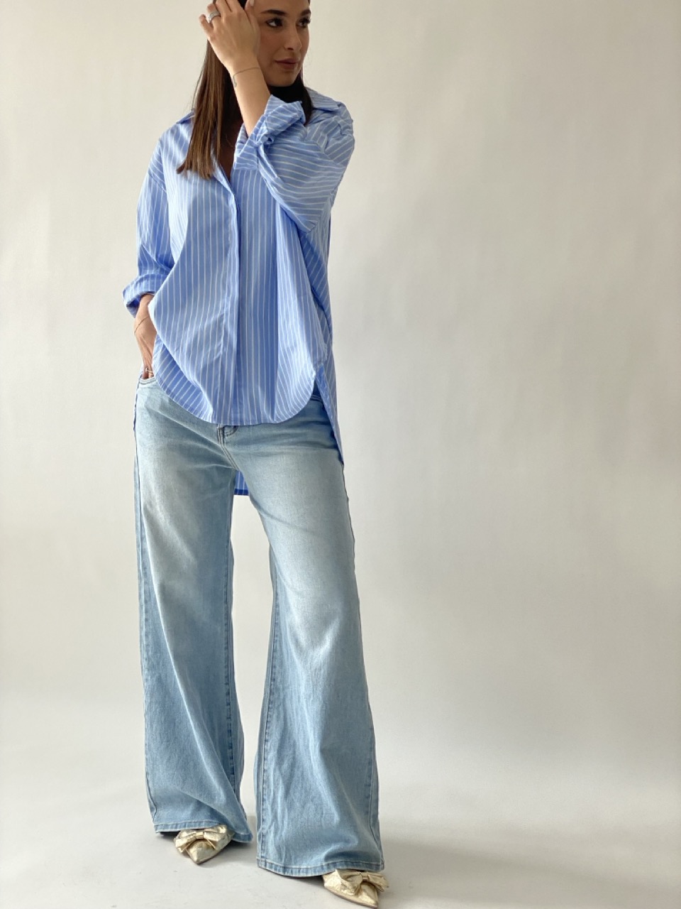 Camicia morbida in fantasia con scritta ricamata dietro.
