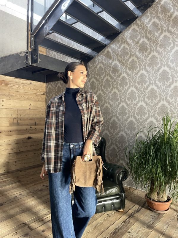 Camicia morbida in fantasia con chiusura con bottoni centrali.