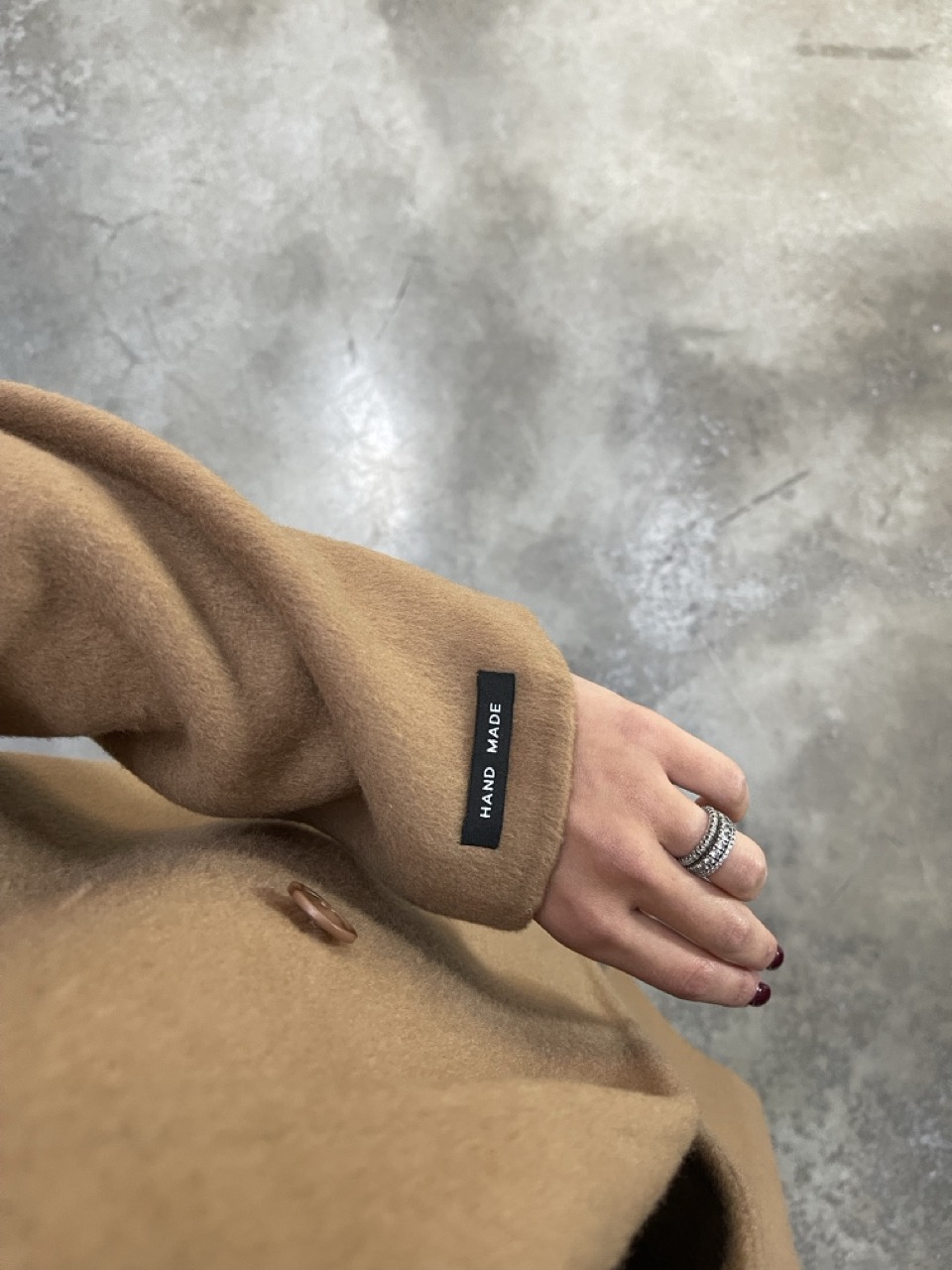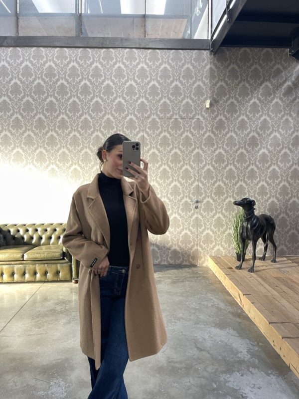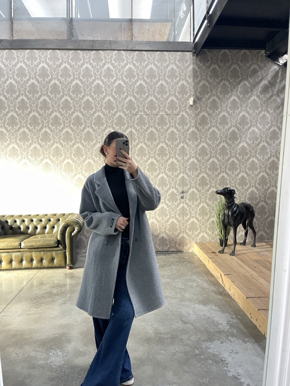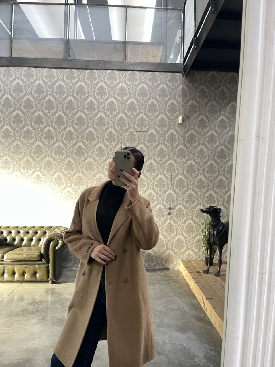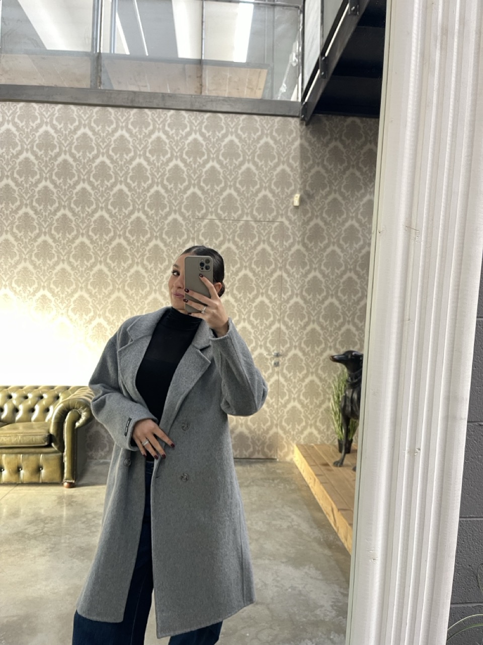 Cappotto midi misto lana modello doppiopetto con tasche laterali.
