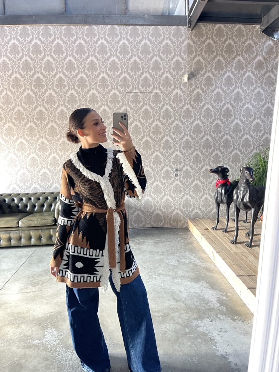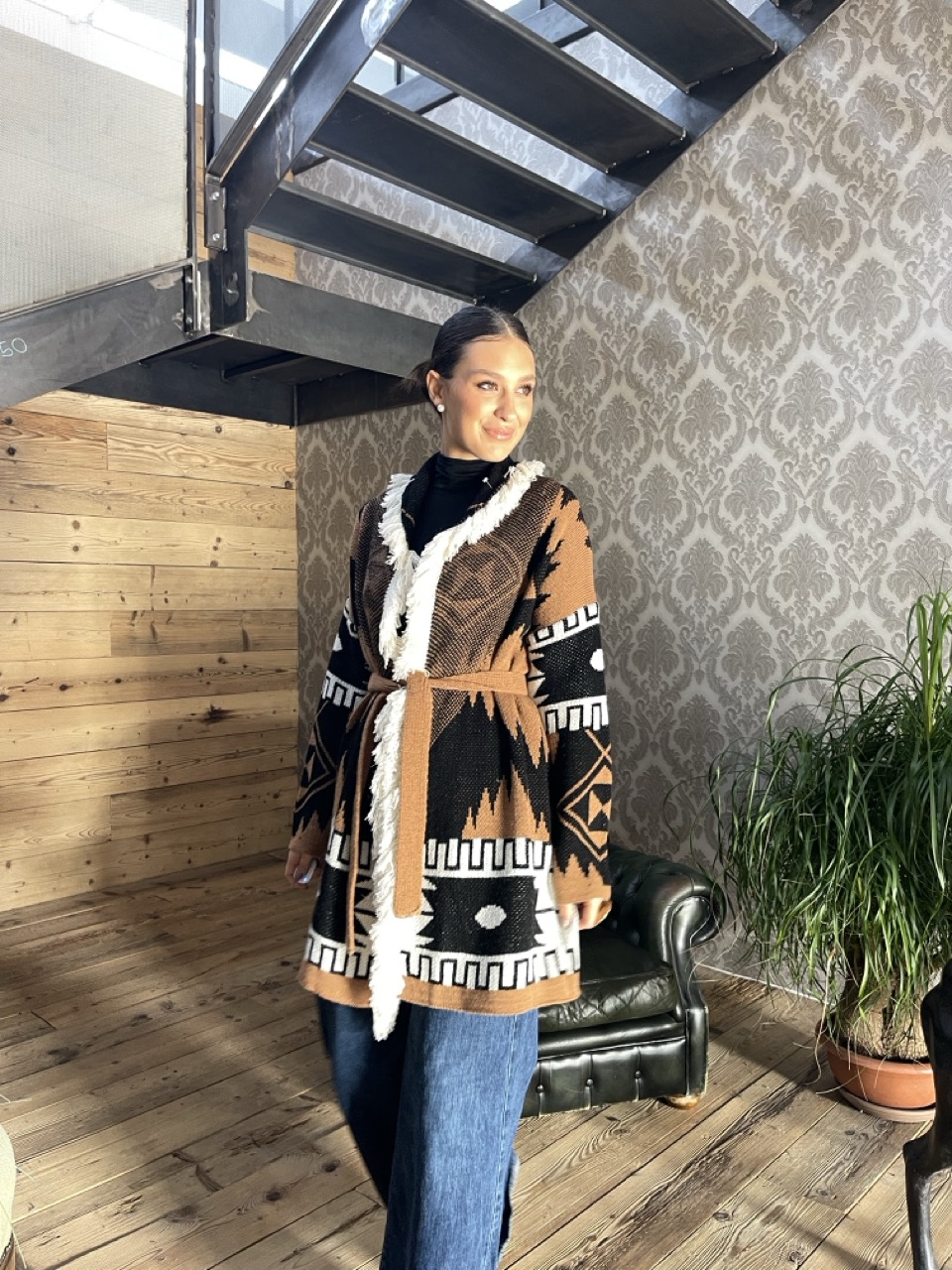 Cardigan SUSY MIX in fantasia midi con cintura in vita.