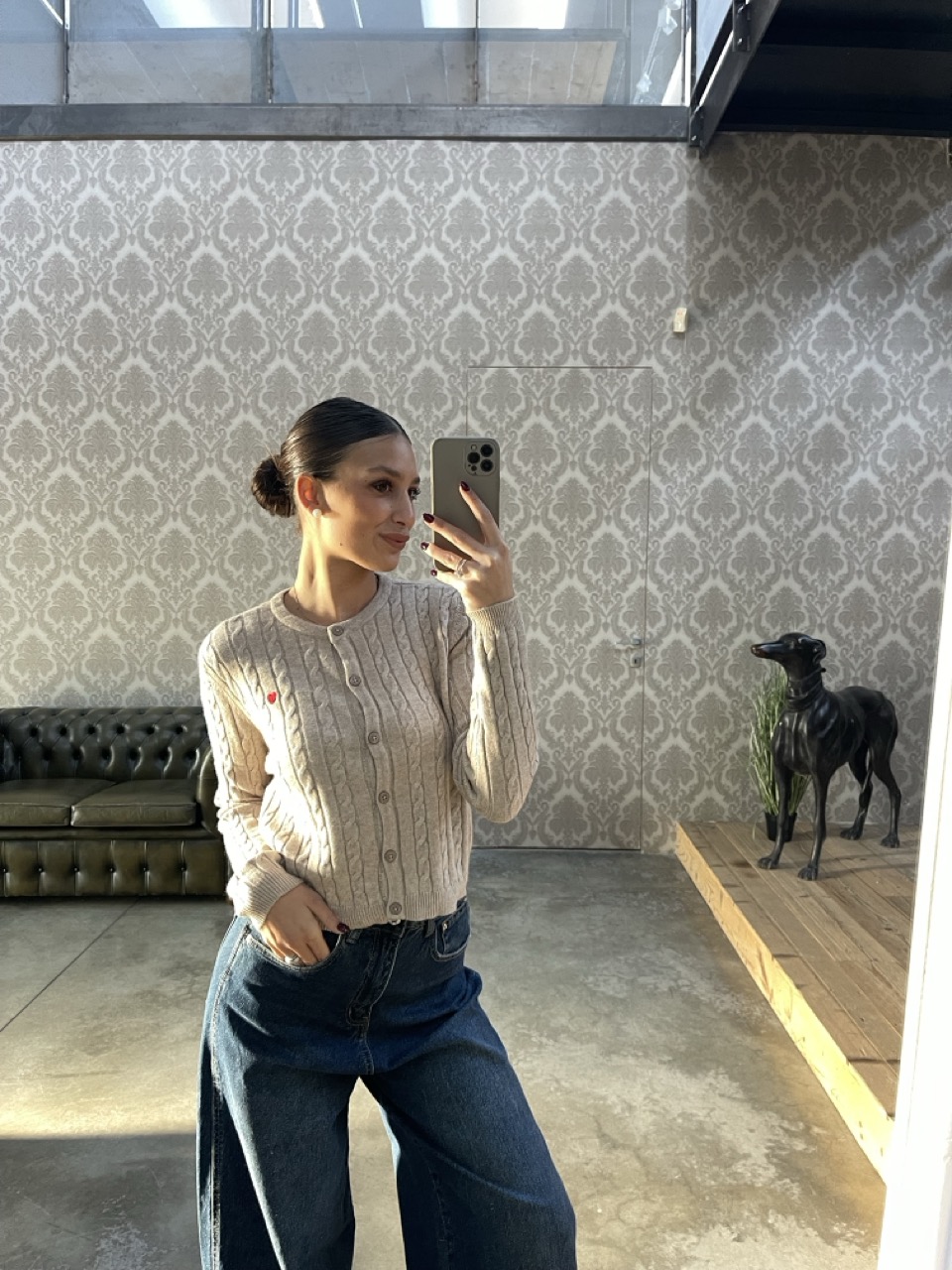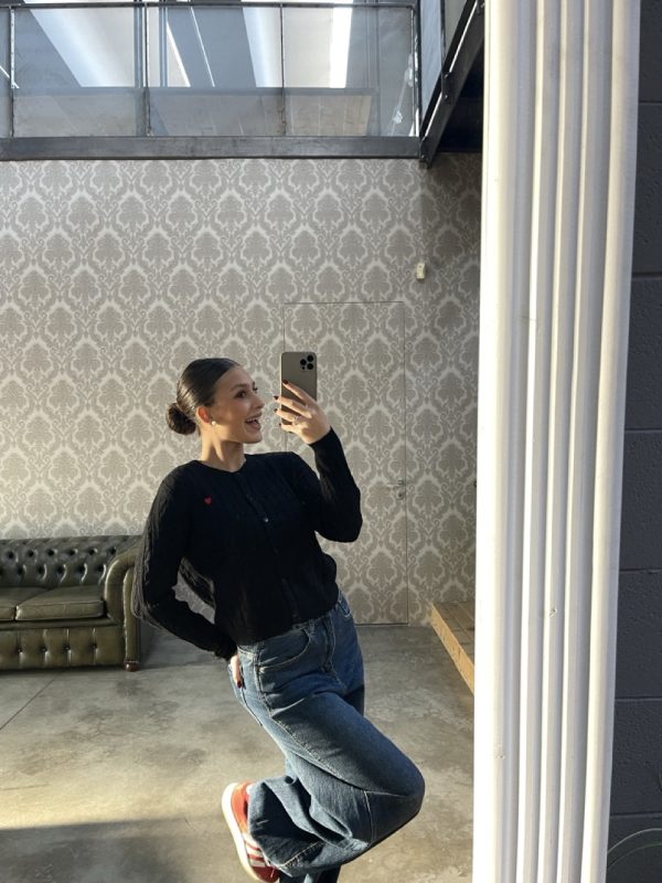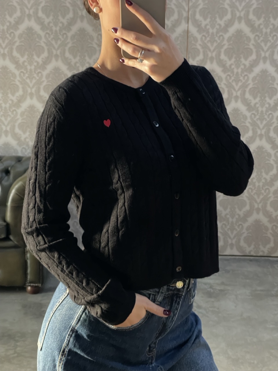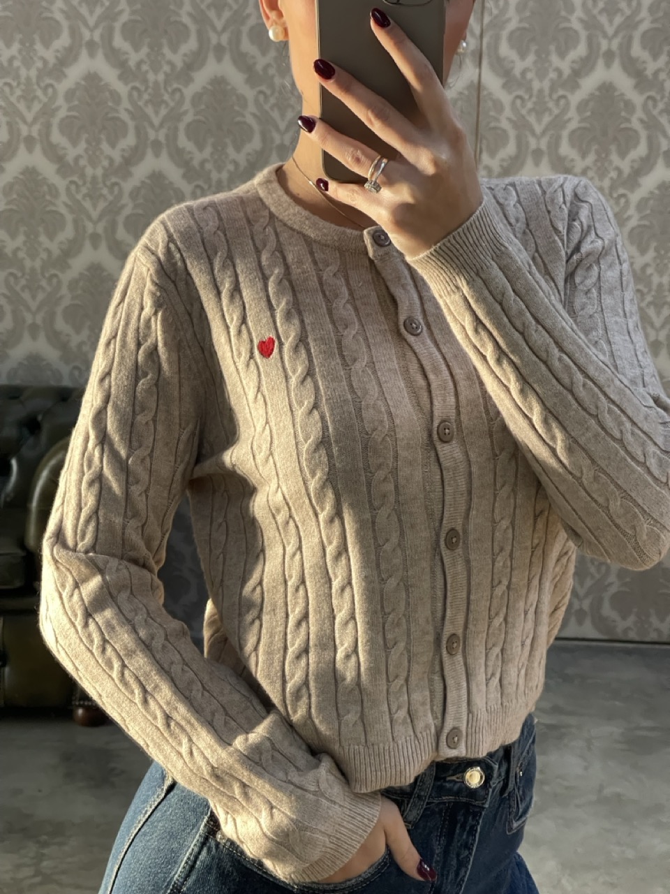 Cardigan ONLY in maglia con trecce, bottoni centrali come chiusura e cuore ricamato.