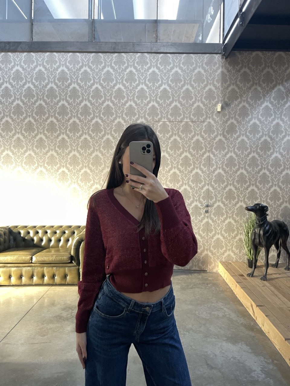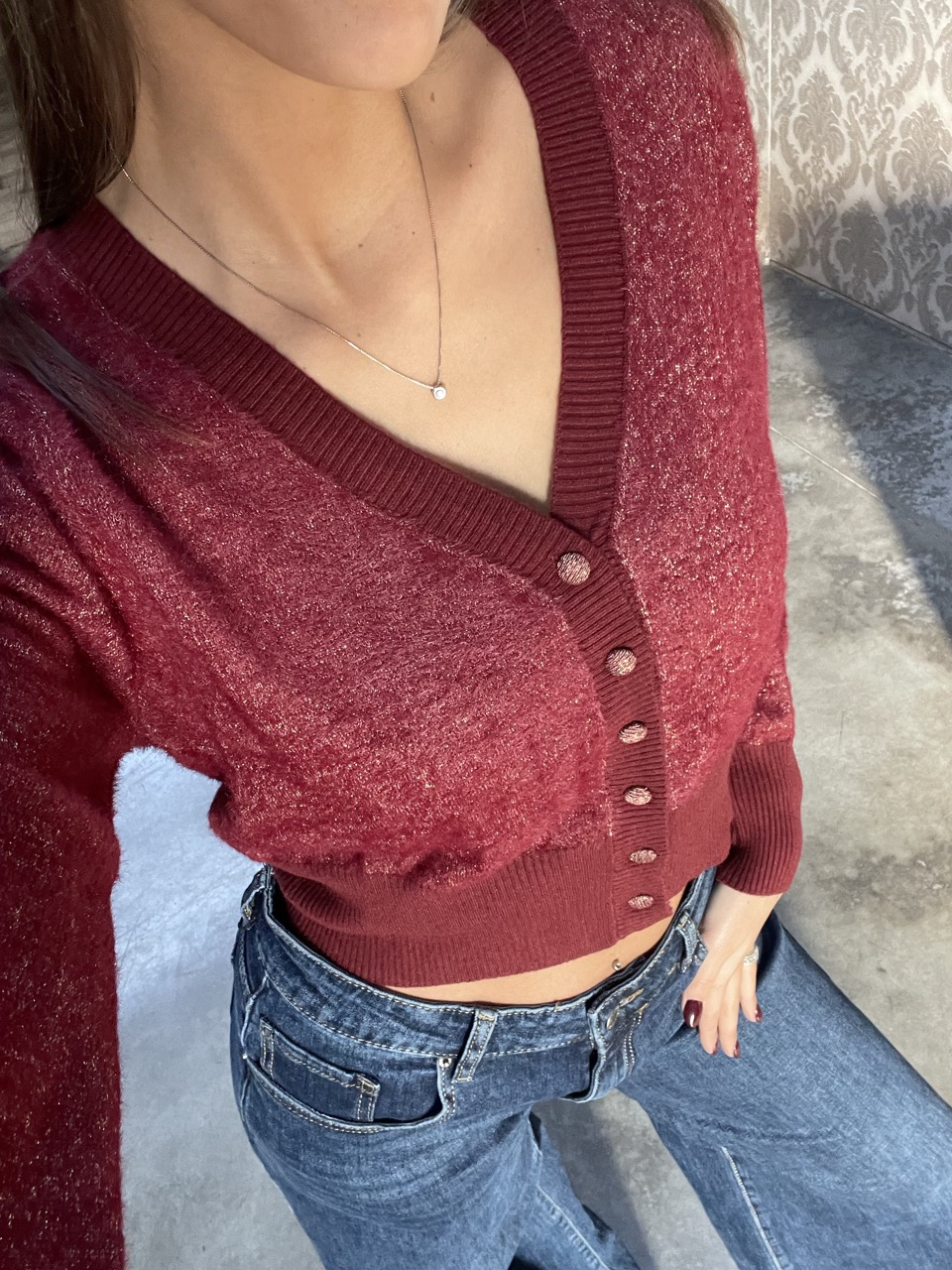 Cardigan in maglia YES-ZEE con filo lurex dettaglio e bottoni centrali come chiusura.