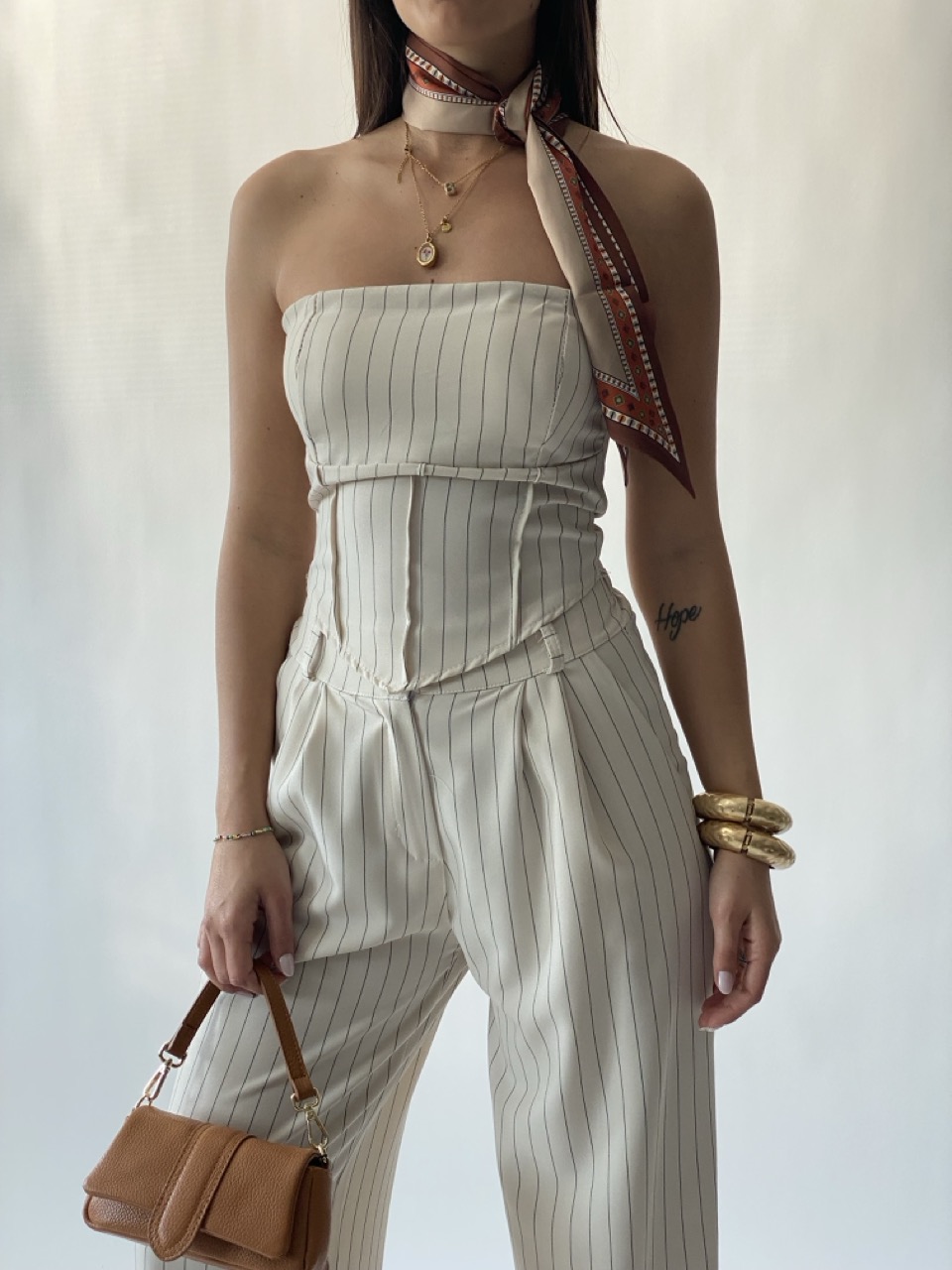 – Top senza spalline con coppe preformate e lacci dettaglio dietro.