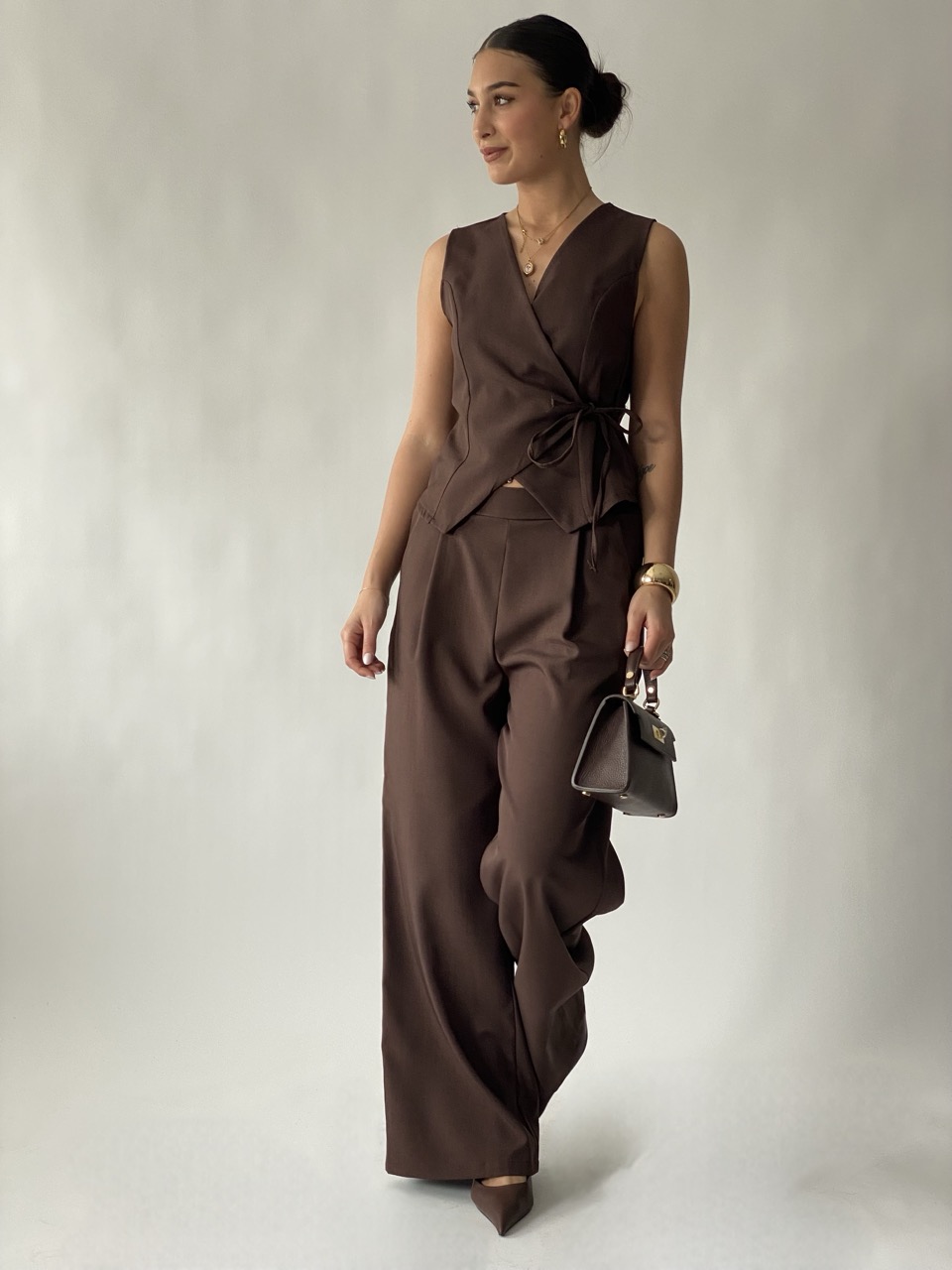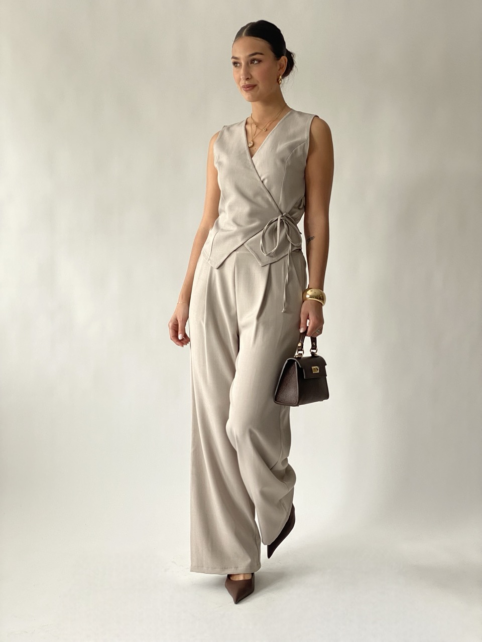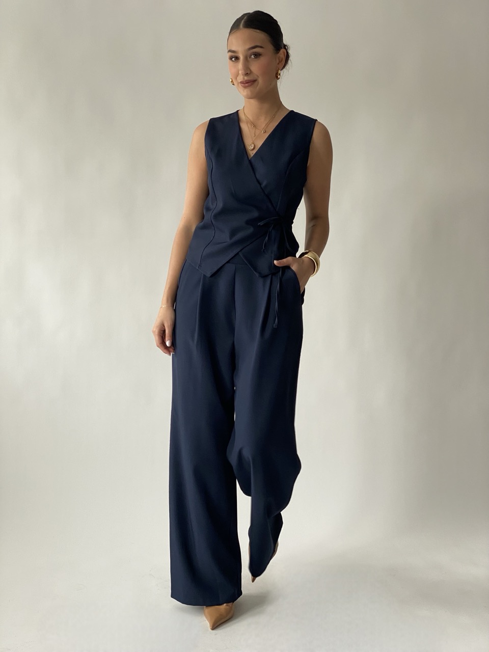– Gilet con chiusura a portafoglio.