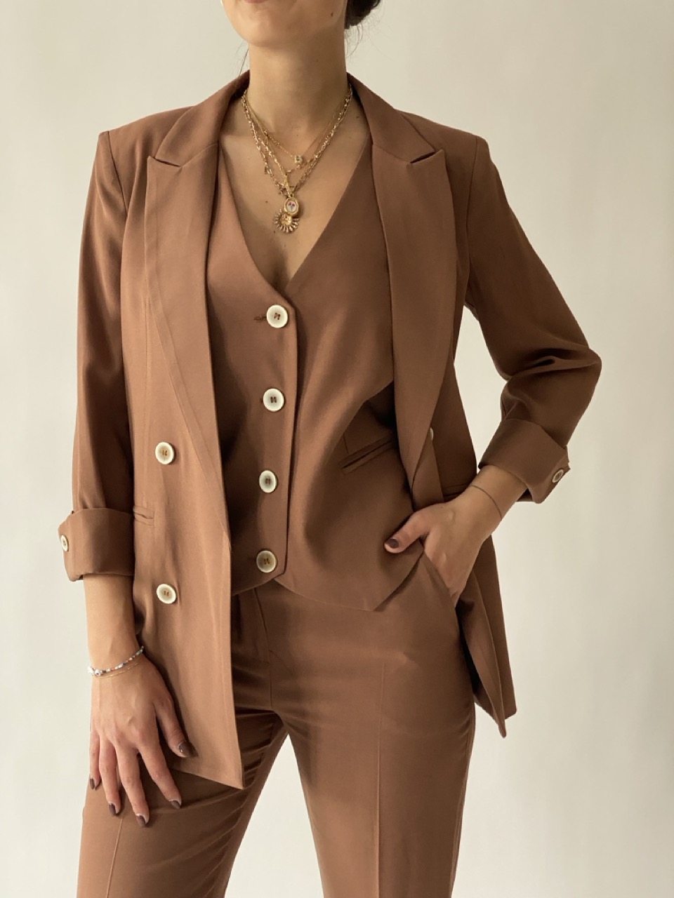 – Gilet con tasche a filetto finte e chiusura con bottoni centrali