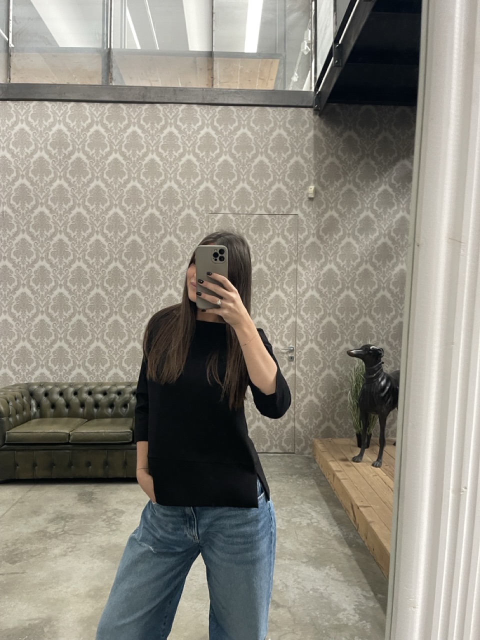Felpa morbida con maniche a 3/4 e piccoli spacchi laterali.