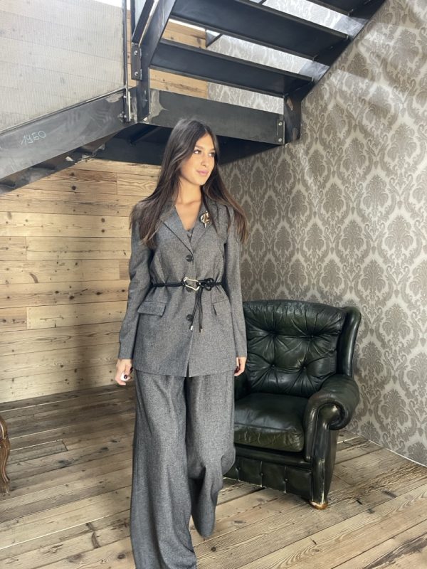 Giacca/Blazer foderata con spalline imbottite, spilla dettaglio e cintura in vita.