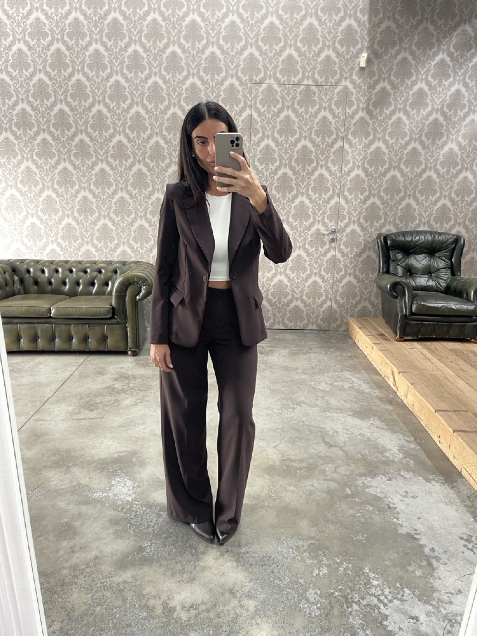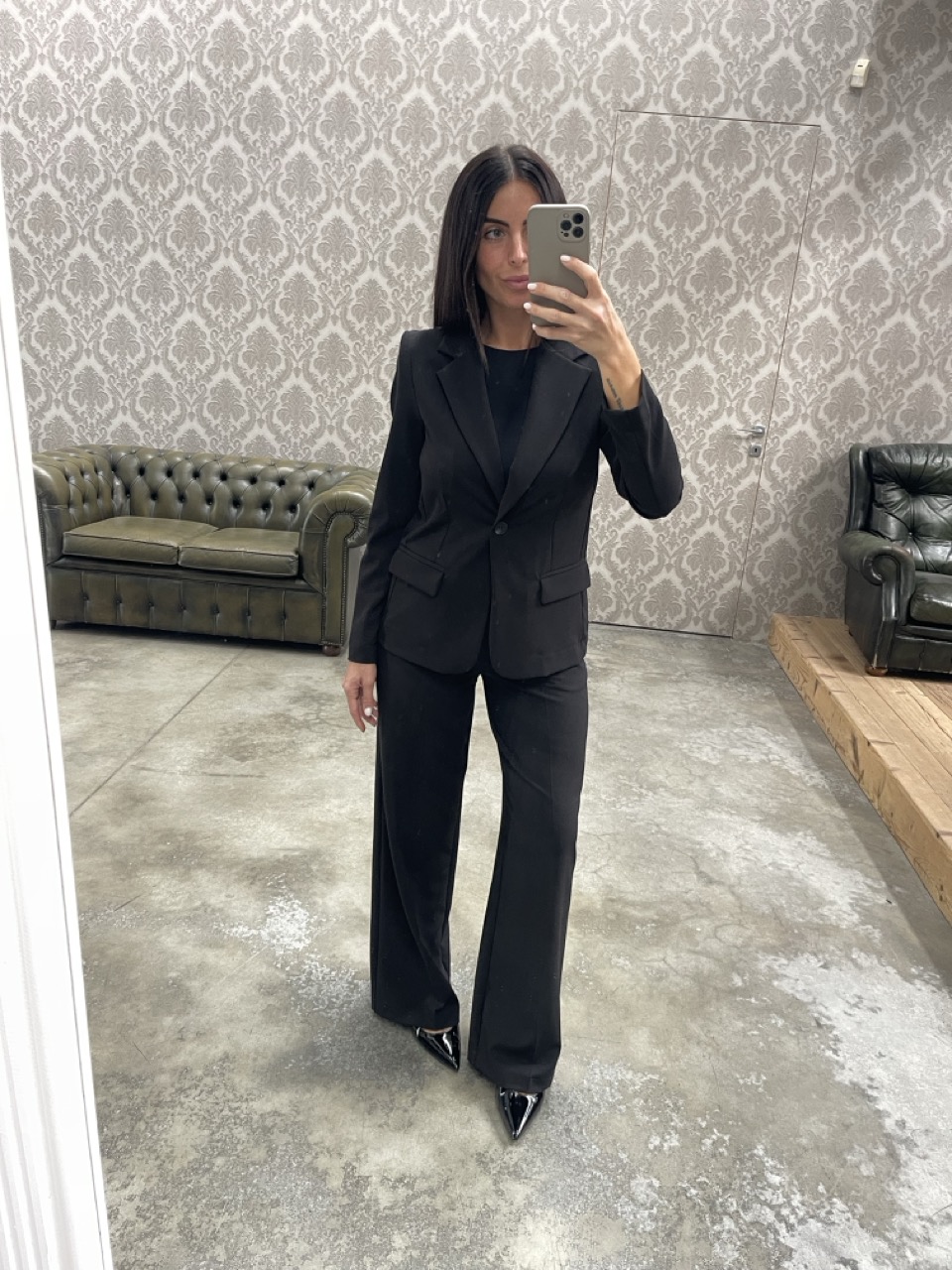 Giacca-Blazer non foderata con spalline imbottite, tasche finte a filetto e bottone centrale.