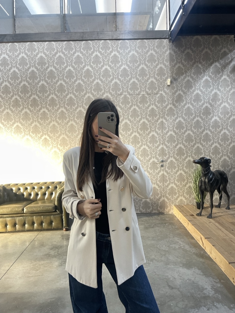 Giacca/Blazer foderata con spalline imbottite, tasche laterali e chiusura con bottoni centrali.