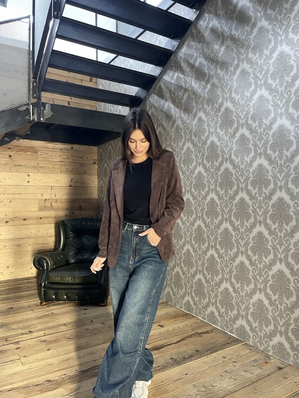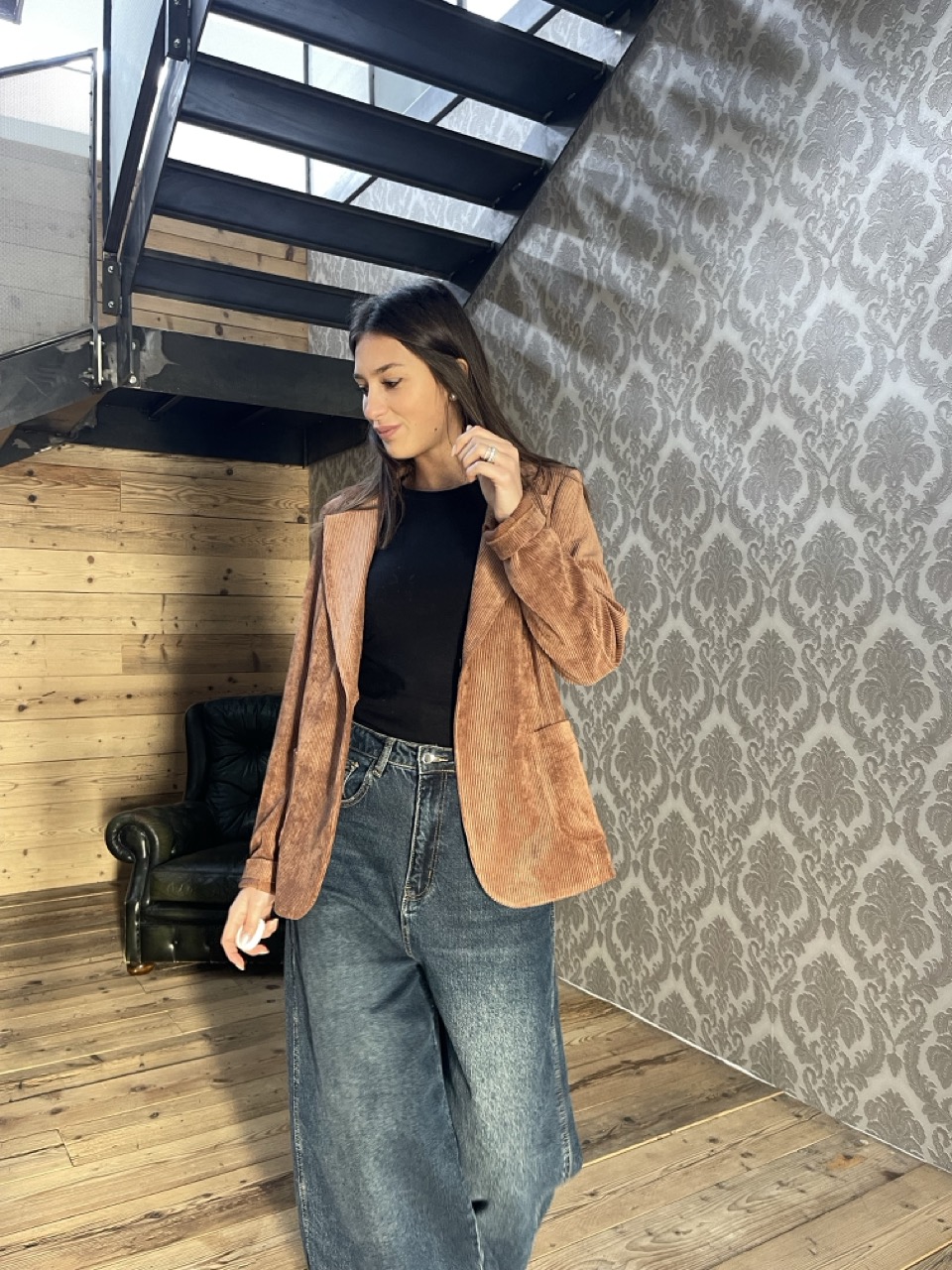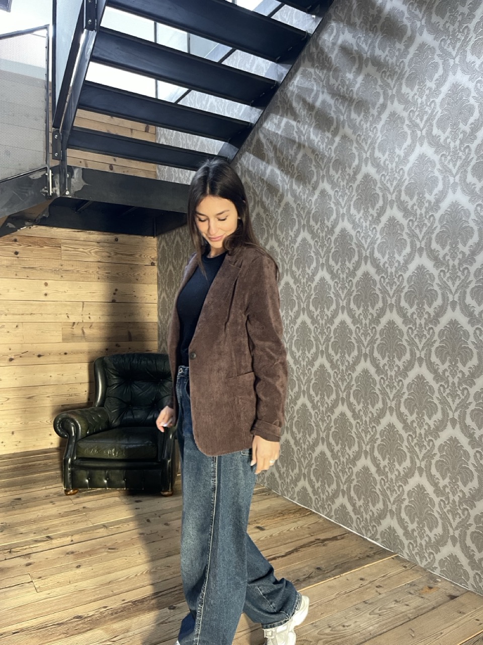 Giacca/Blazer NANEBI modello a costine non foderata con tasche laterali e chiusura con bottone centrale.