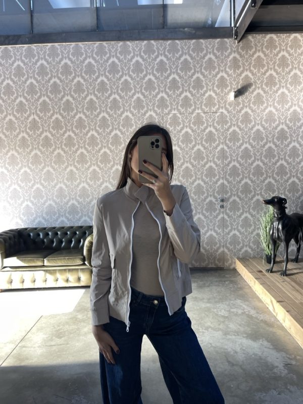 Giacca non foderata con tasche laterali e zip centrale come chiusura.