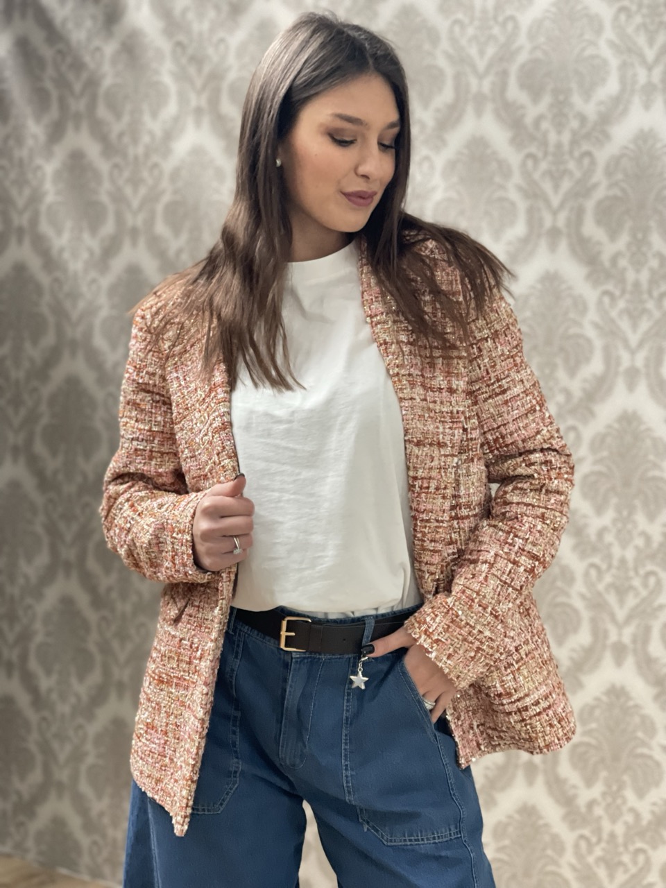 Giacca in fantasia SUSY MIX foderata con spalline leggermente imbottite e chiusura con bottoni centrali.