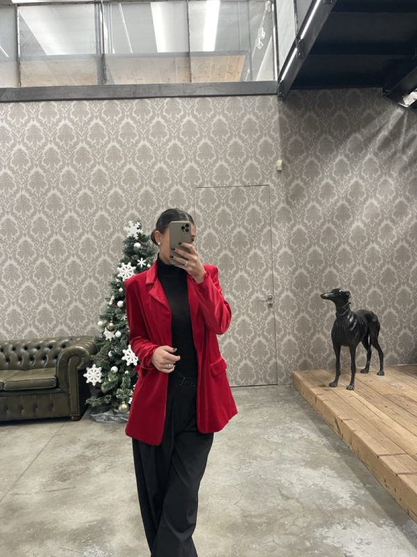 Giacca SOUVENIR in velluto foderata con tasche laterali e chiusura con bottone centrale.