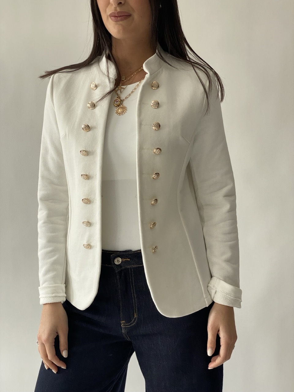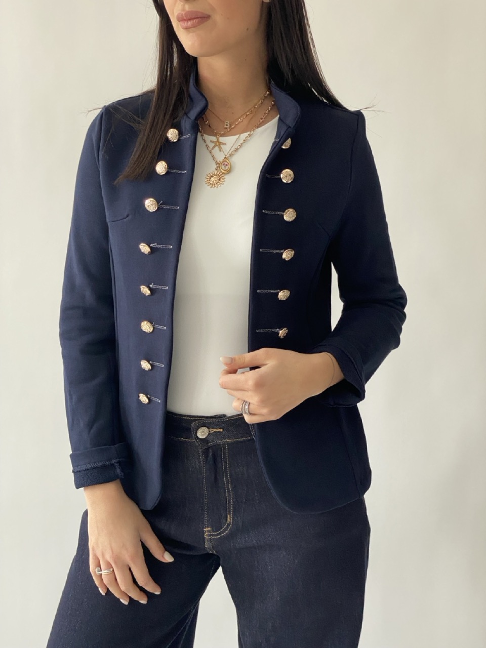 Giacca napoleone in felpa garzata con bottoni dettaglio.