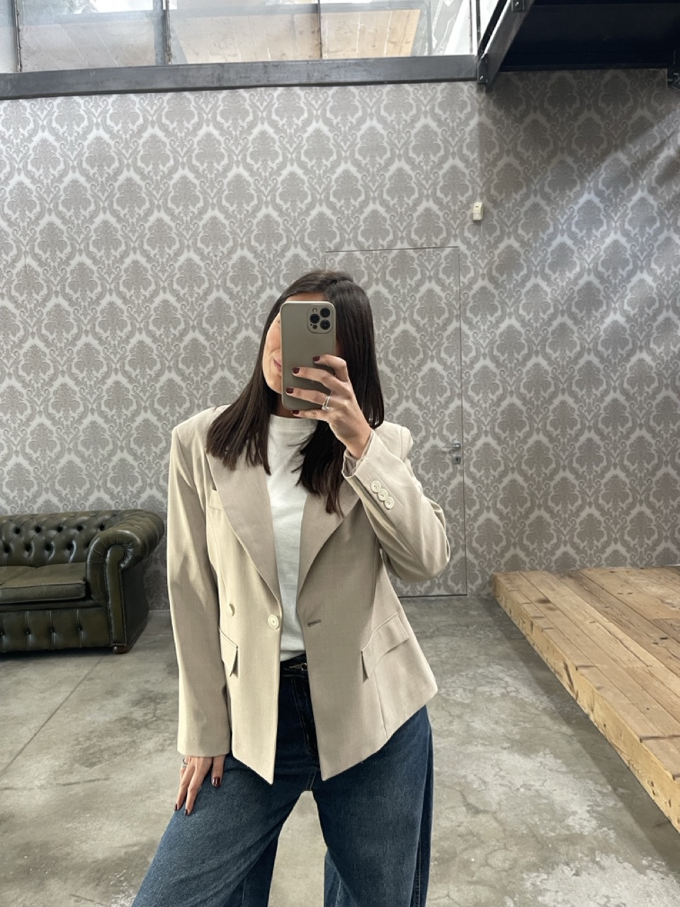 Giacca SUSY MIX foderata con spalline imbottite e tasche finte laterali.