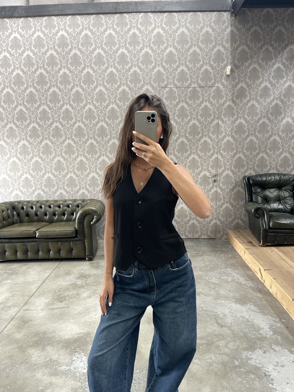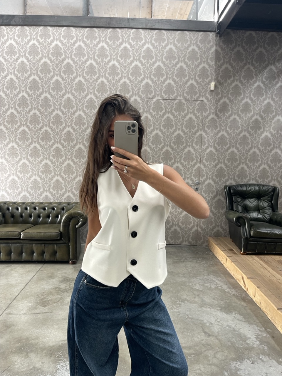 Gilet con tasche laterali a filetto finte e bottoni centrali come chiusura.