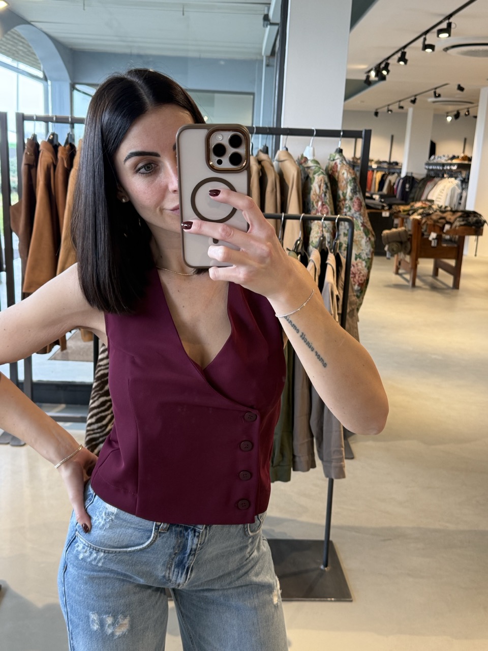 Gilet SUSY MIX con chiusura con bottoni laterali.