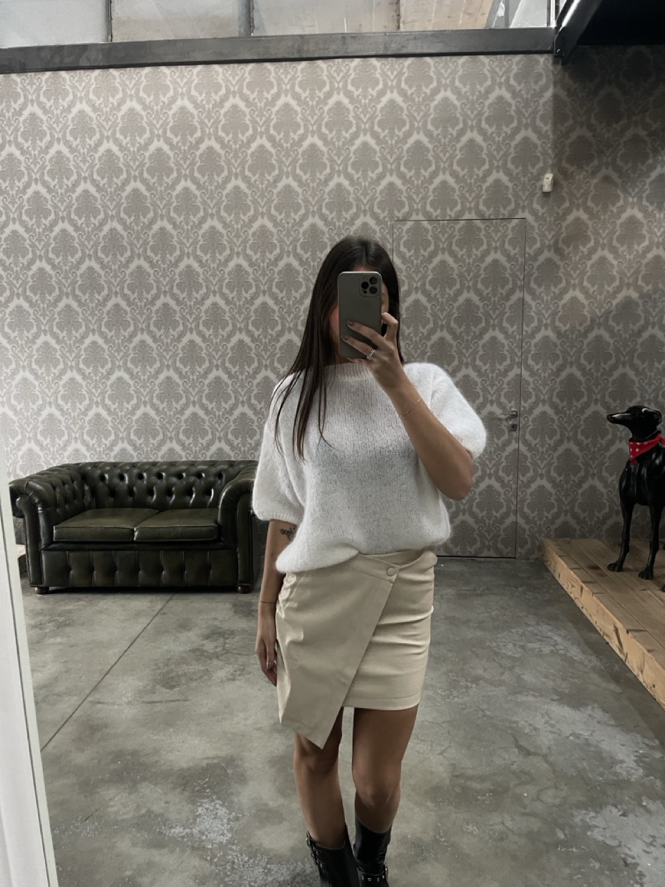 Gonna mini in ecopelle con finta chiusura a portafoglio e zip laterale come chiusura.