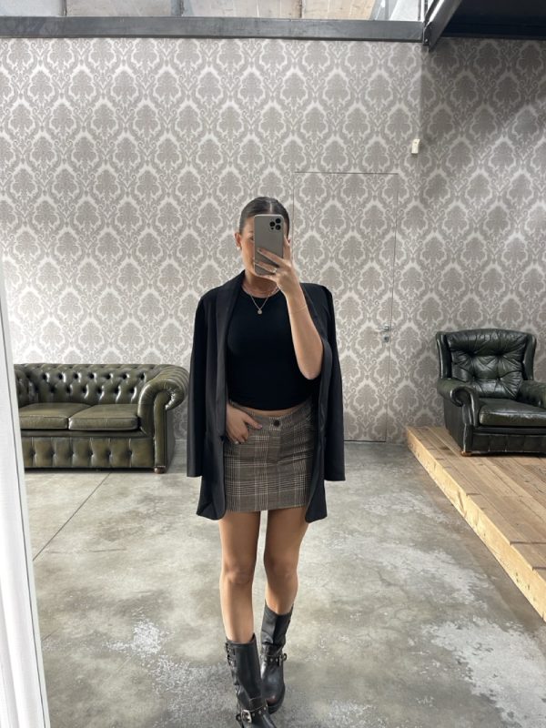 Gonna in fantasia VICOLO mini con tasche laterali e chiusura con bottone e zip.