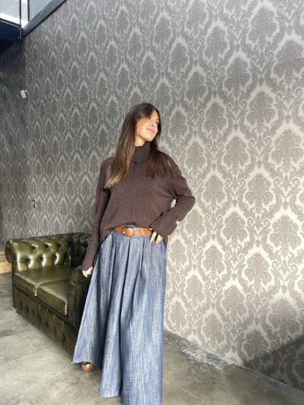 Gonna lunga a vita medio alta con elastico e cintura in vita.