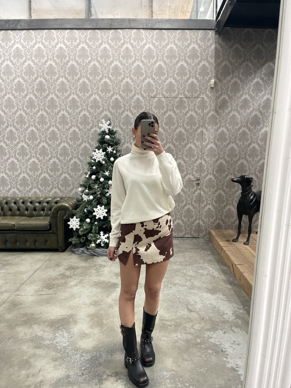 Gonna/Pantaloncino in fantasia con zip laterale come chiusura.