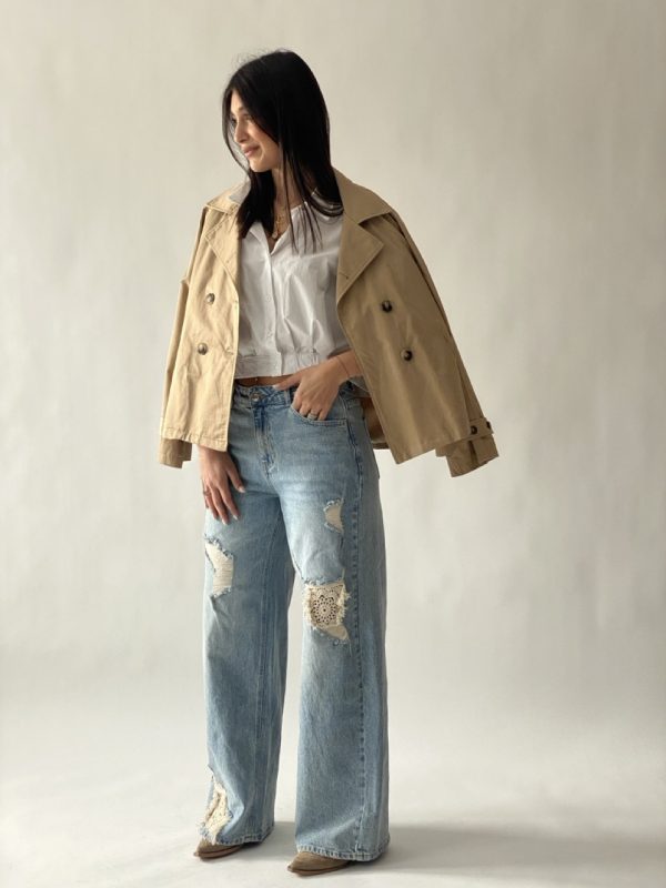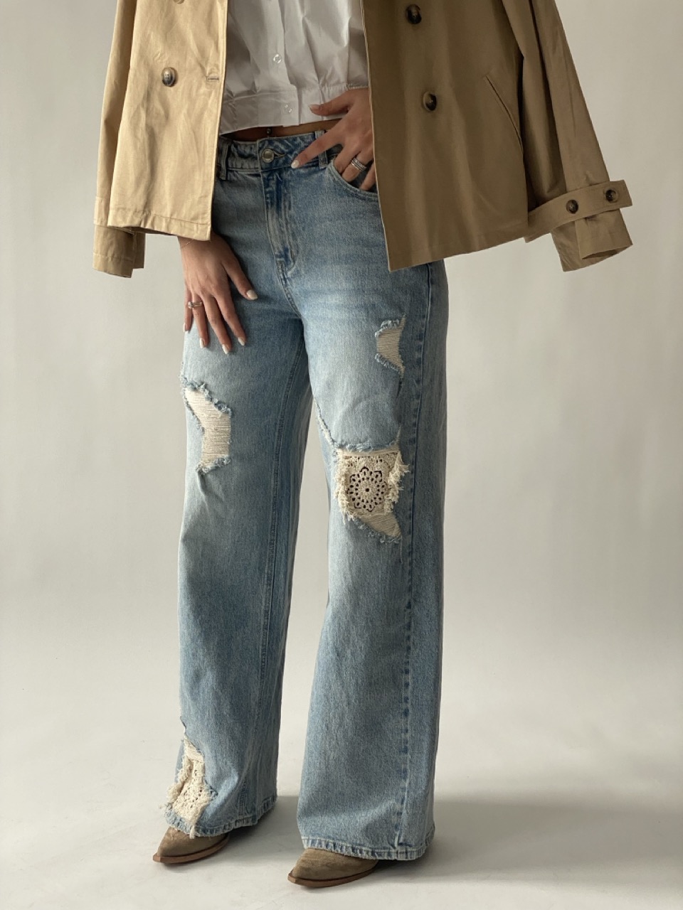 Jeans modello a palazzo a vita medio alta con inserti in crochet.