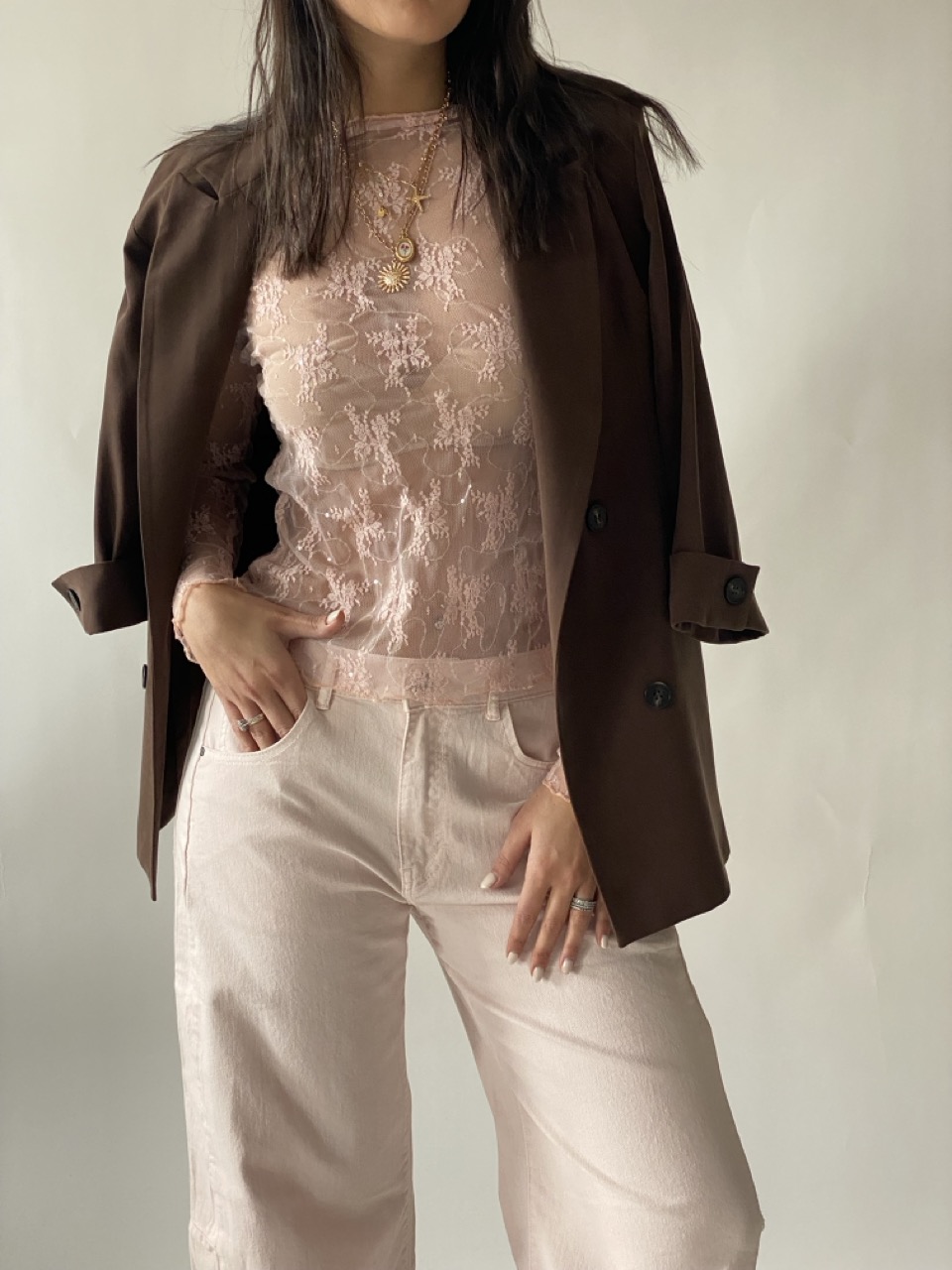 Jeans modello balloon a vita medio alta con chiusura con zip e bottone.