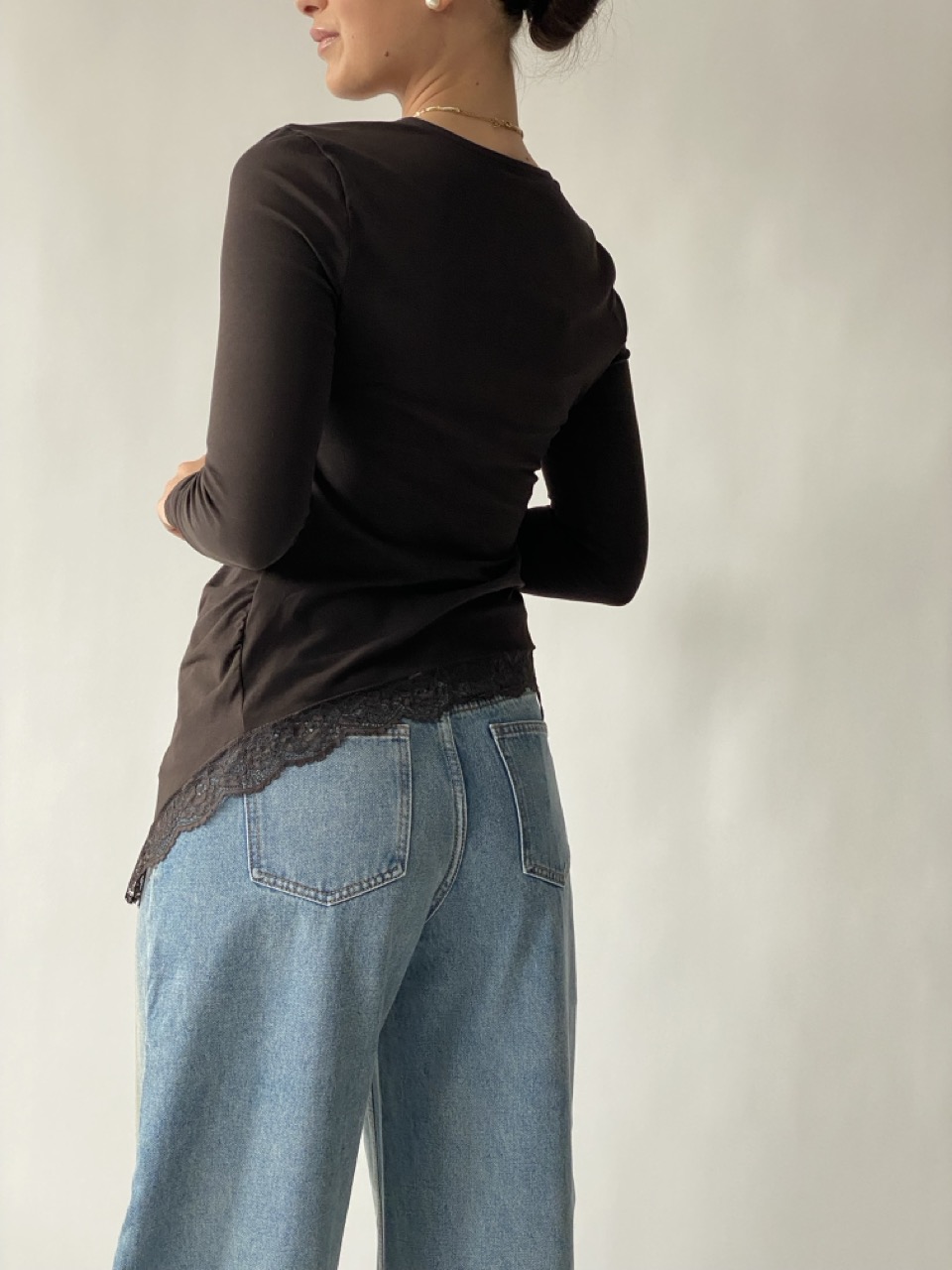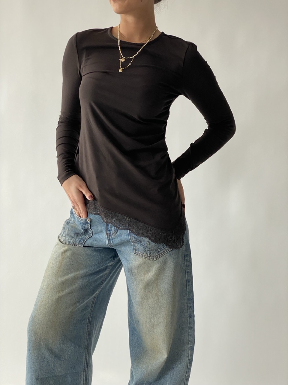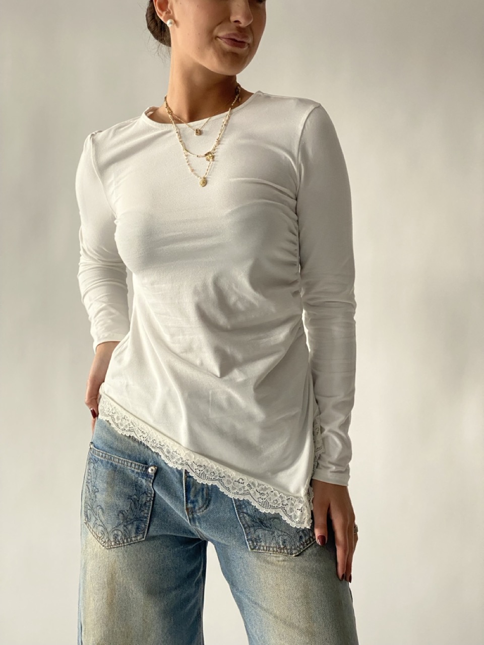 Maglia ONLY con arricciatura laterale e dettaglio di pizzo.