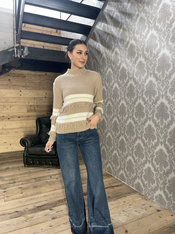 Maglione LAKORE in maglia lavorata con dettaglio di frange.