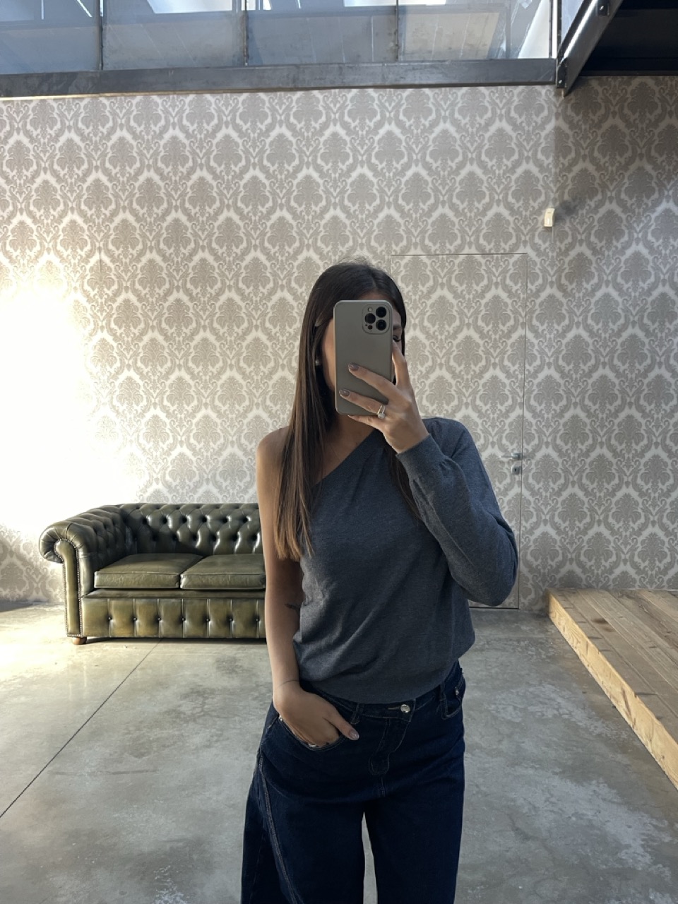 Maglione monospalla TENSIONE IN morbido.