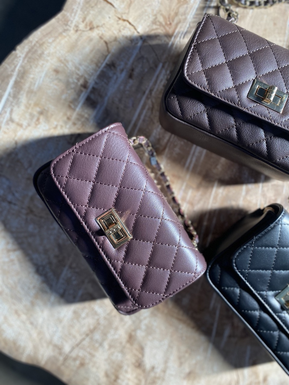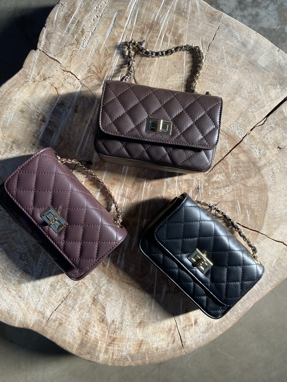 Mini bag in pelle trapuntata con tracolla con dettaglio color oro.