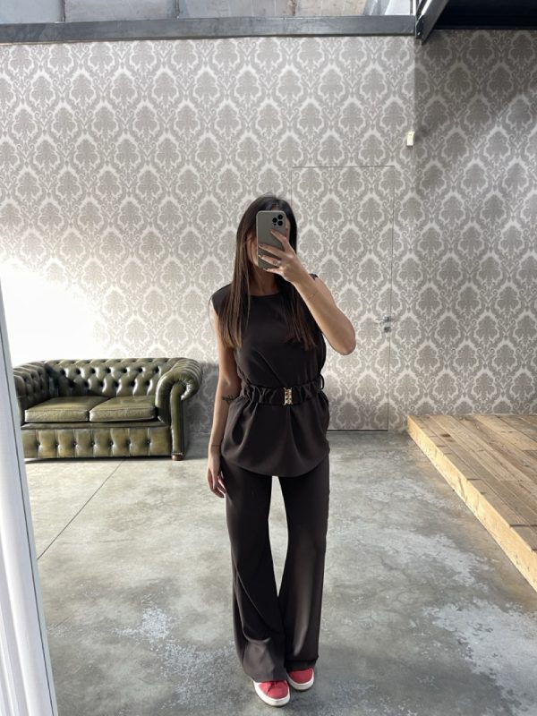Pantalone NANEBI modello a palazzo con elastico in vita dietro.
