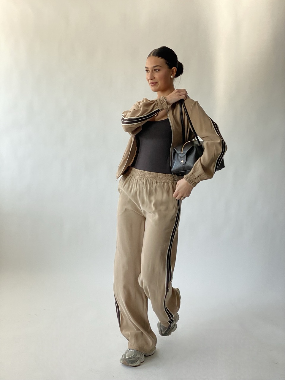 Pantalone SUSY MIX modello a palazzo con elastico in vita, tasche laterali e banda dettaglio.