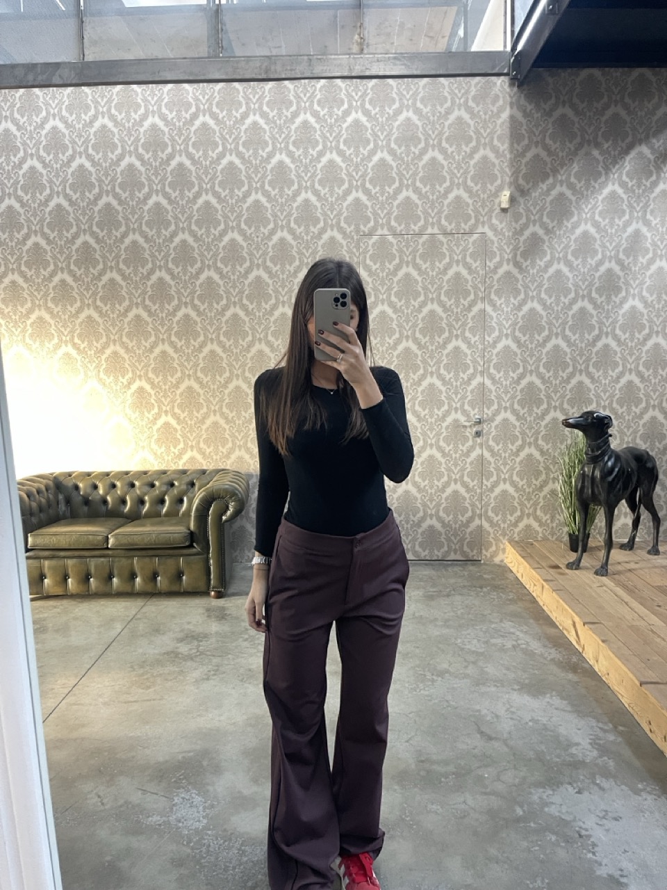 Pantalone SUSY MIX modello a palazzo a vita medio alta con tasche laterali.